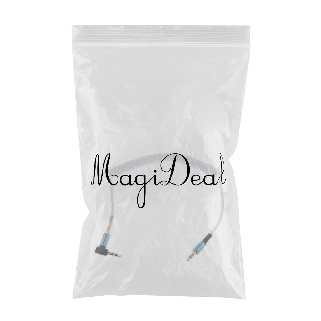 -3.5mm L-Shaped Right Angle Stereo Audio Aux Headphone Coiled Cable Extension Cord