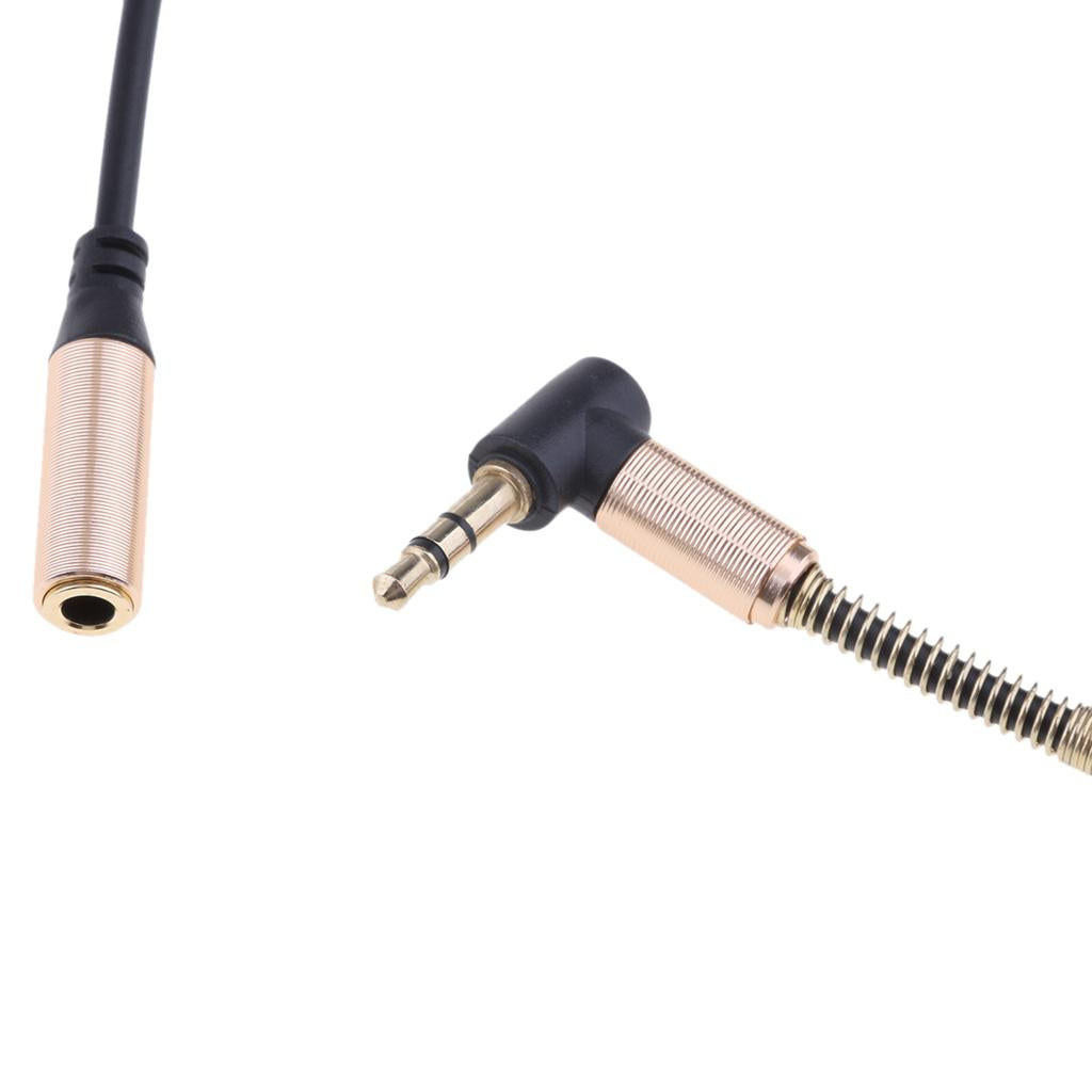 3.5mm audio stereo male to male cable 90 degree right angle spring protective cord lead coiled connector.