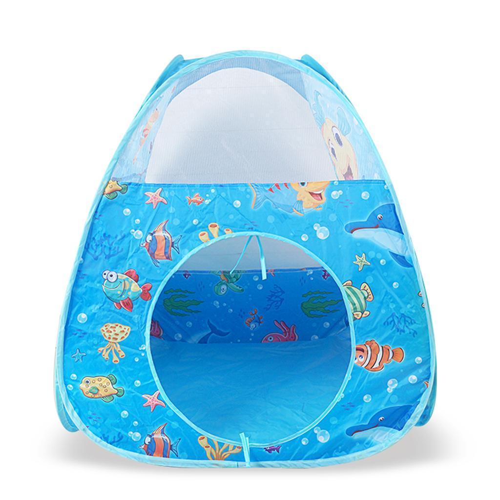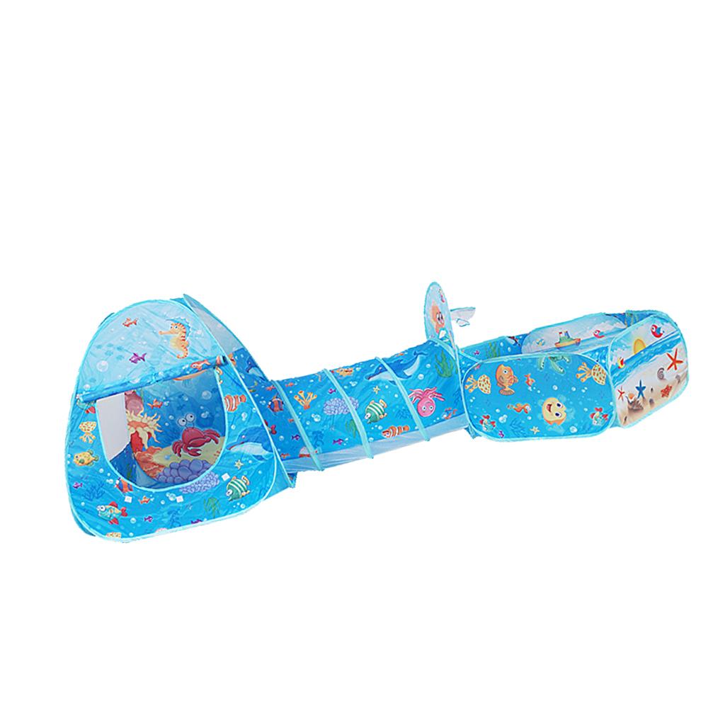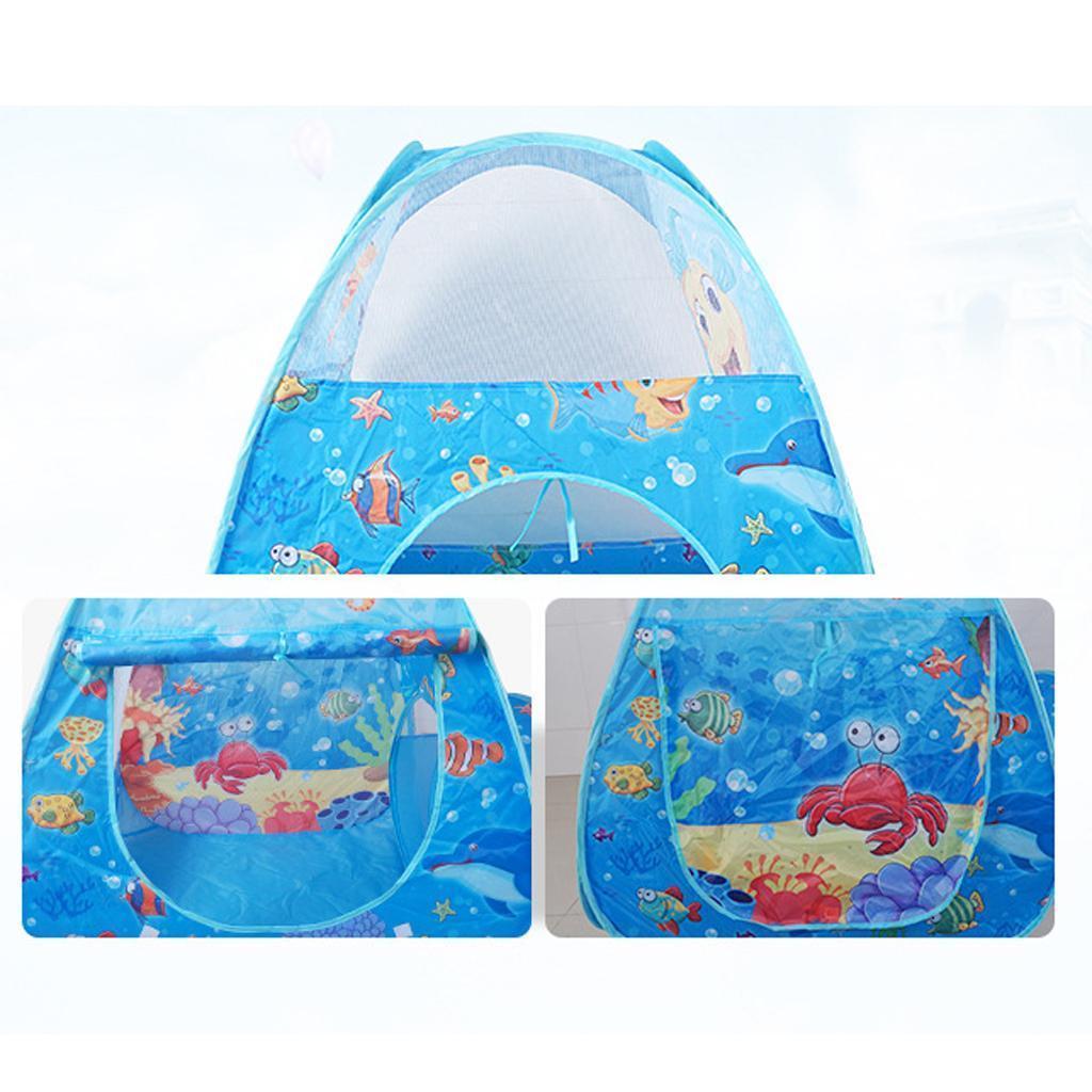 3-in-1 Kids Playhouse with Pop Up Tent, Tunnel, and Basketball Pit for Indoor Outdoor Play - Blue Sea A