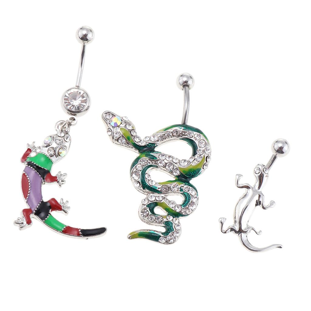 Colorful Gecko: Bar Diameter: 1.6mm / 0.06 inch;Small Ball Diameter: 5mm / 0.20 inch; Big Ball Diameter: 8mm / 0.31 inch; Navel Ring: 23mm / 0.91 inch; Gecko Size: 31 x 11mm / 1.22 x 0.43 inch;