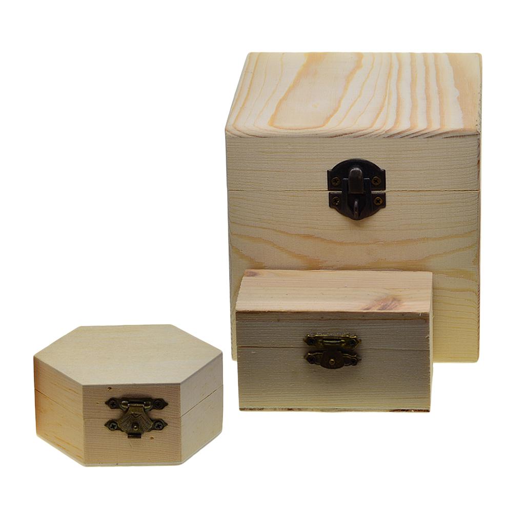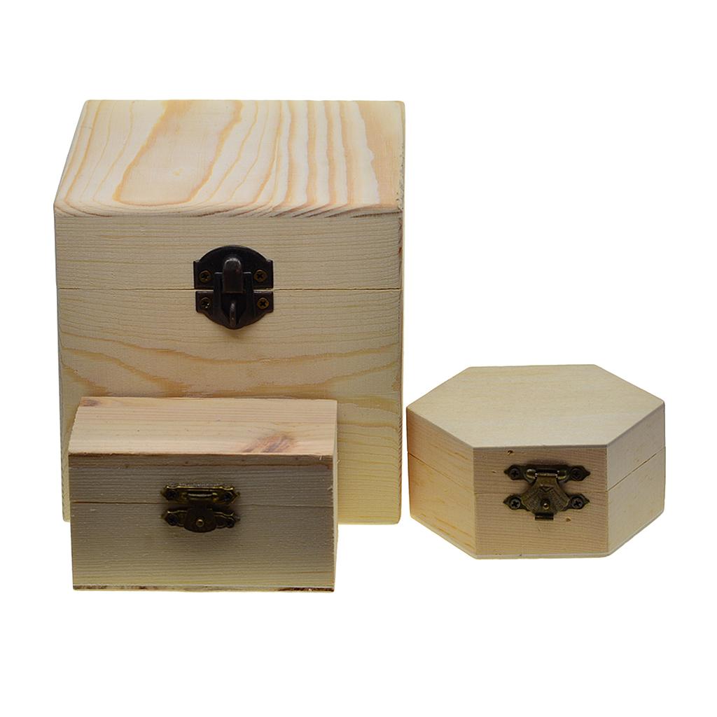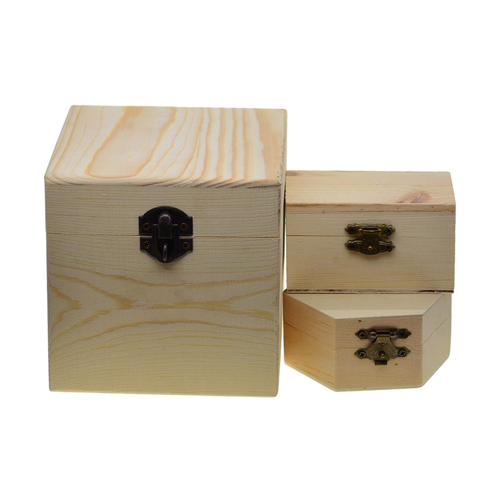 3 Pieces unfinished wooden jewelry cases storage boxes
