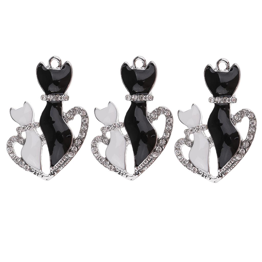 Lovely and delicate love heart cat pendant charms with rhinestones, can give your designs a professional touch.