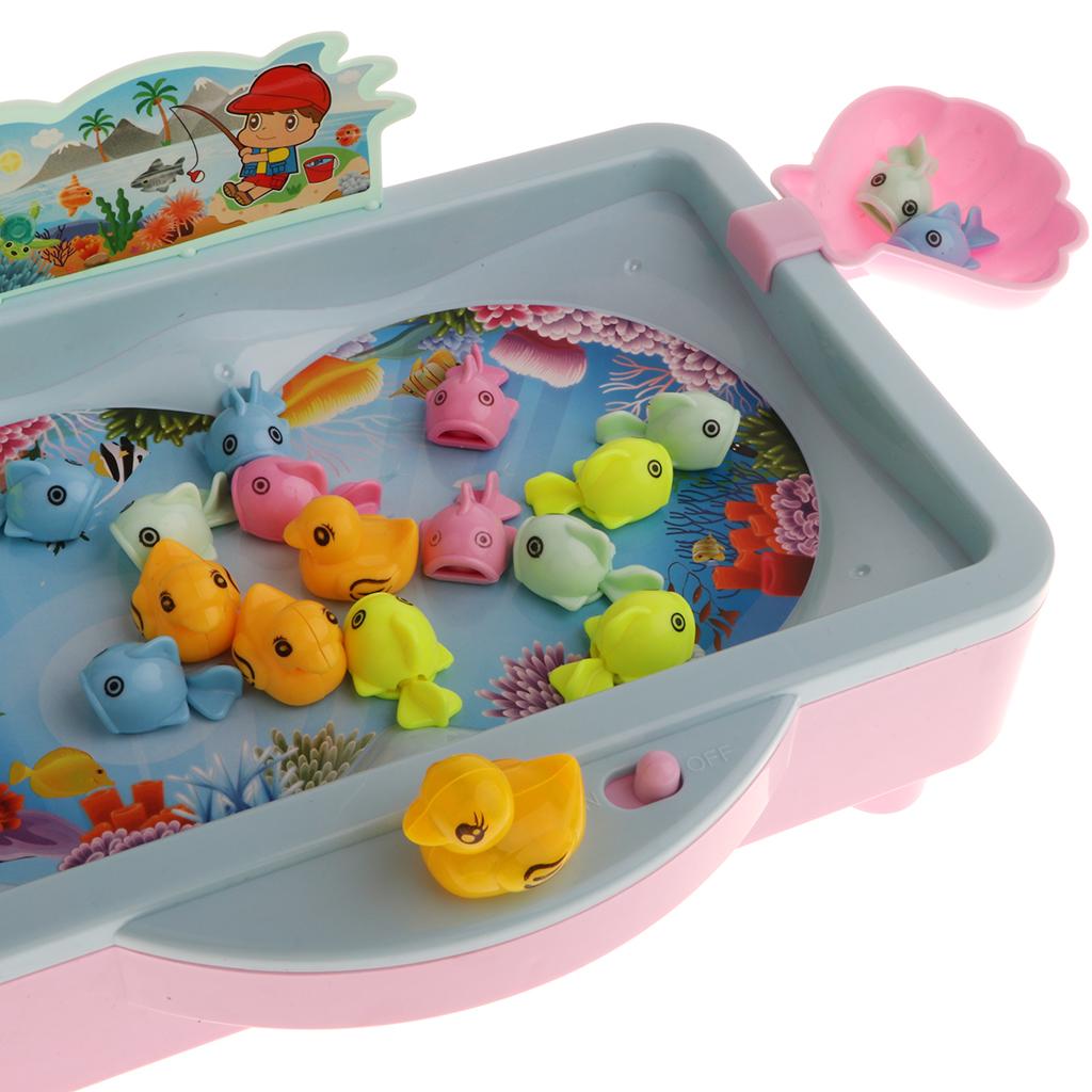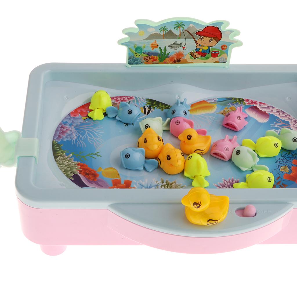 Various musical song for play, pool can be added into water & spinning the fishing pole to reel the fish in.