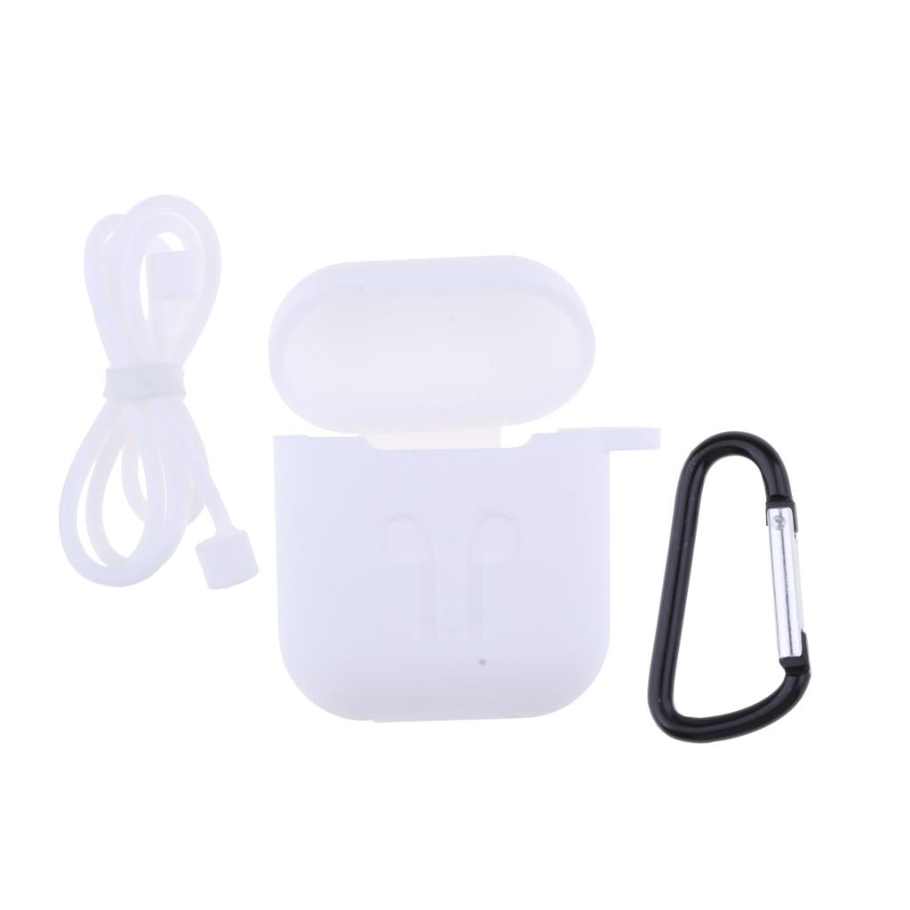 3in1 Shockproof Silicone Protective Cover Apple Wireless Earbuds Accessories with Earphone Sports Anti-lost Strap for Apple Airpods Charging and Locking Carabiner,White