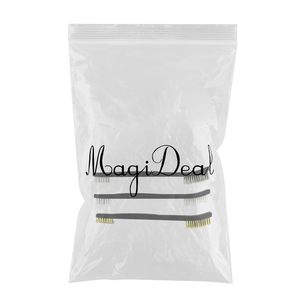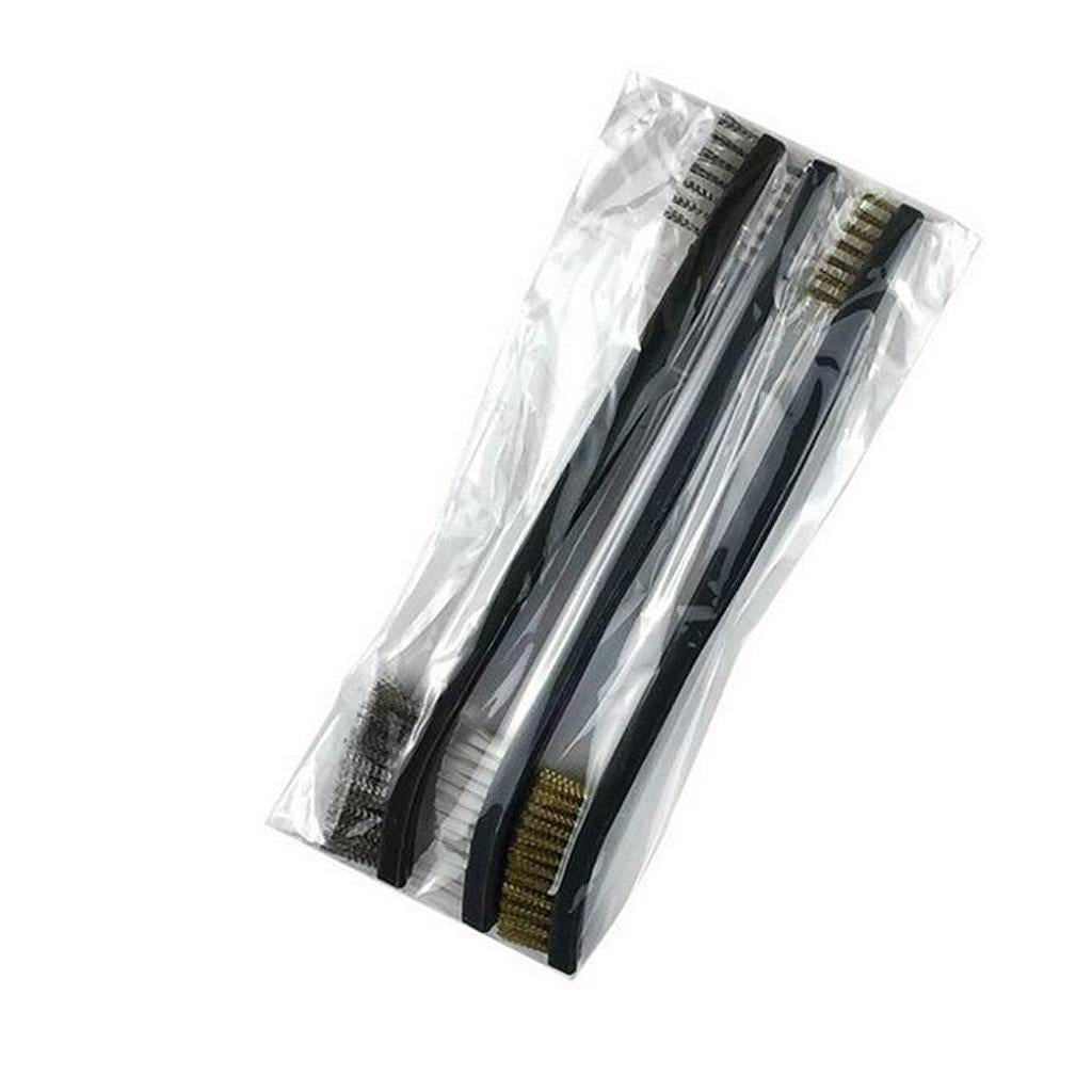 Brass bristles clean unfinished metal parts without damaging surfaces or fine features, such as screw threads, connection terminals, and cutting tools without damaging surfaces or fine features.