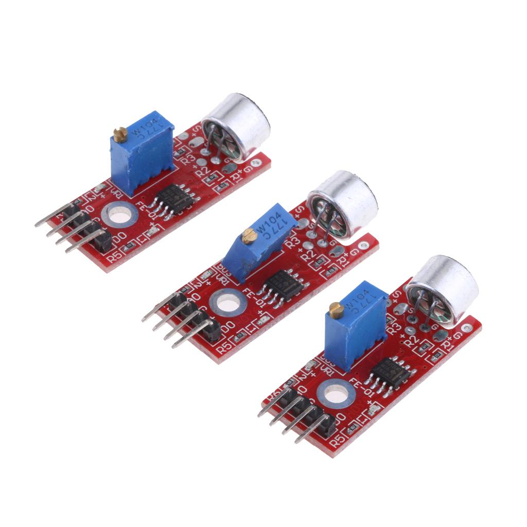 For sound detection module has two outputs: AO, analog output, real-time output voltage signal of the microphone; DO, digital output, when the sound intensity reaches a certain threshold, the output high and low signal.