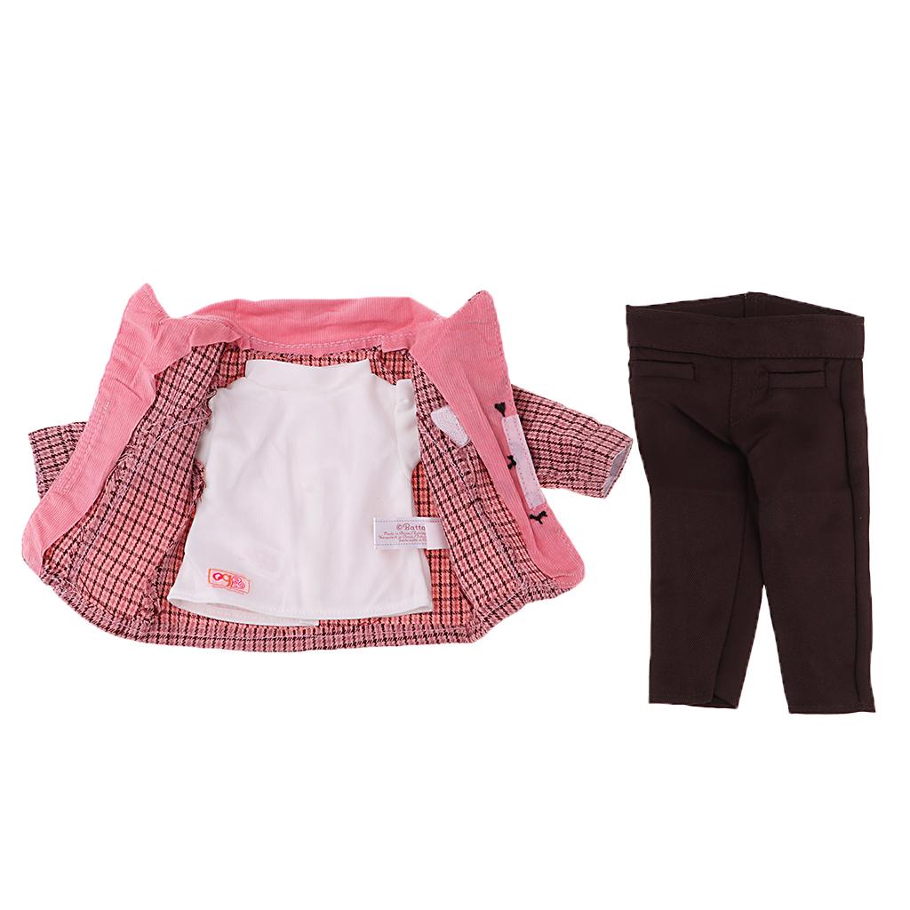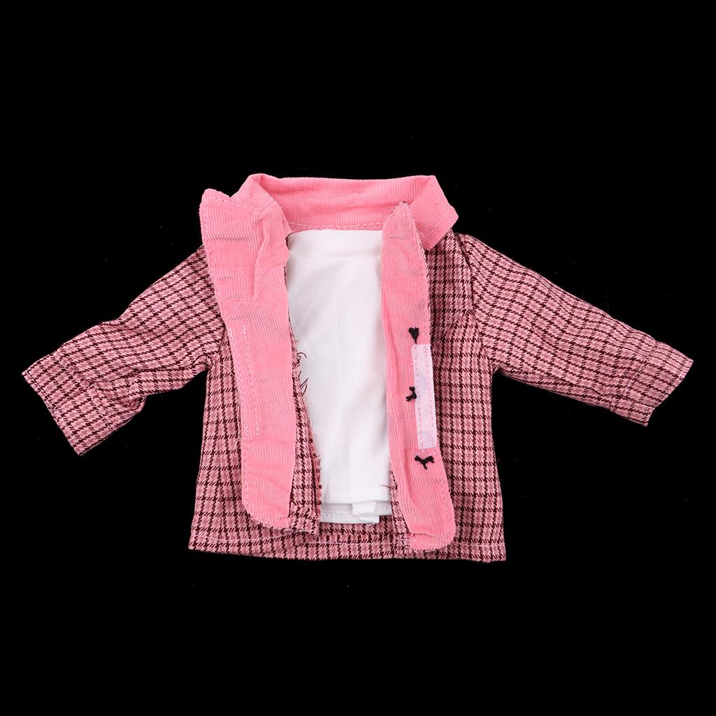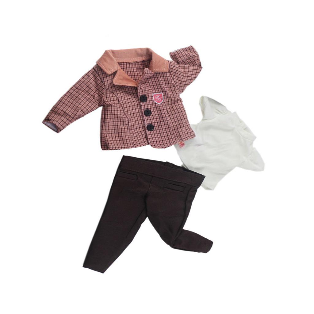3 pieces doll clothes suit for girl doll dress up accesories, cute plaid design coat, white short sleeve top & pants suit