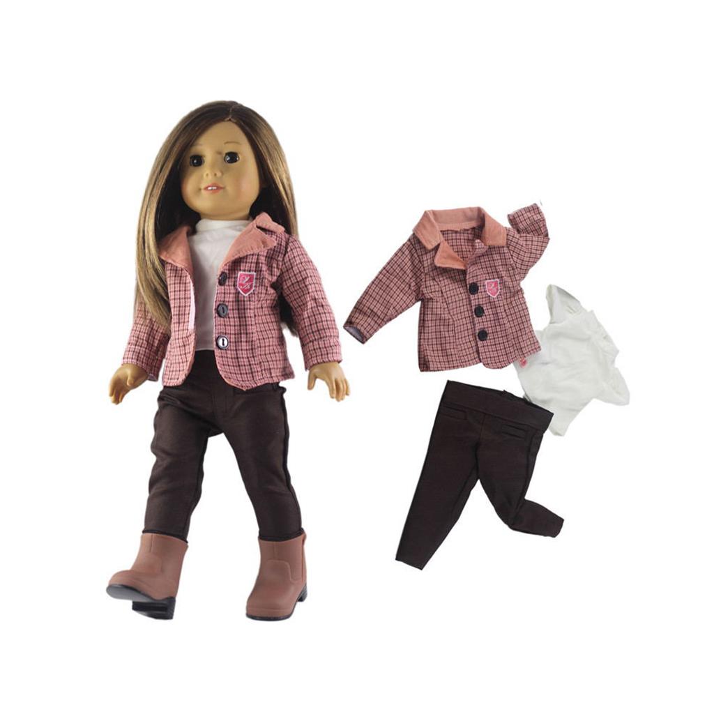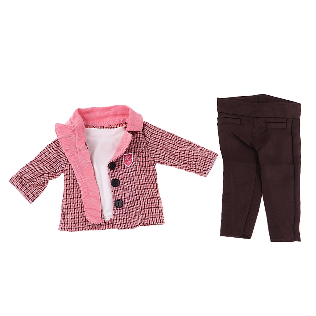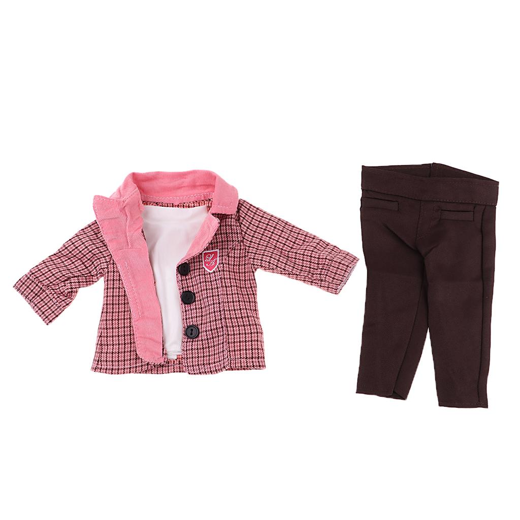 3pcs Trendy Clothes Set Plaid Coat Casual Outfits for 18inch American Girl Doll Decor
