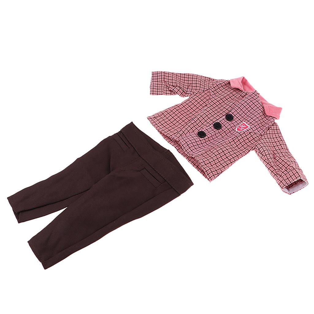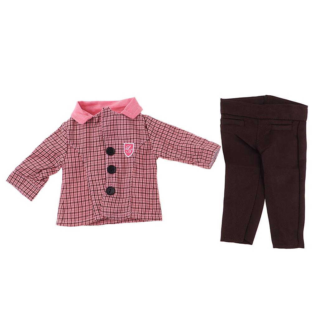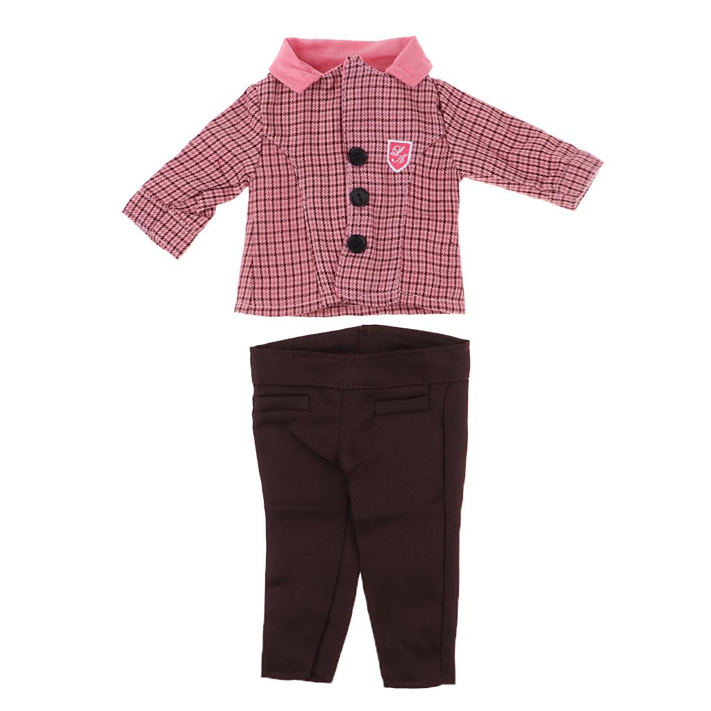 3pcs Trendy Clothes Set Plaid Coat Casual Outfits for 18inch American Girl Doll Decor