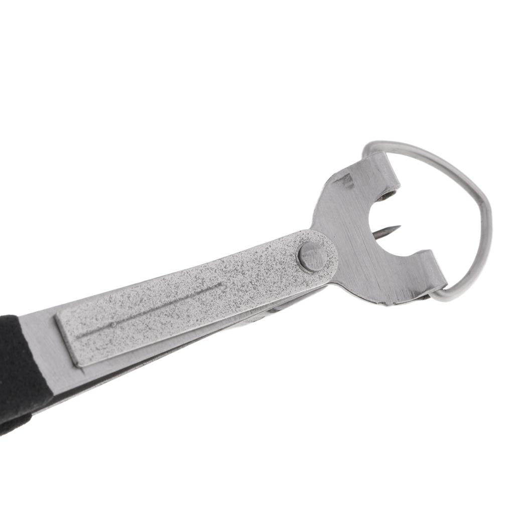 Features hook sharpener, line clippers, jig eye cleaner / line knot picker and knot tyer combo.