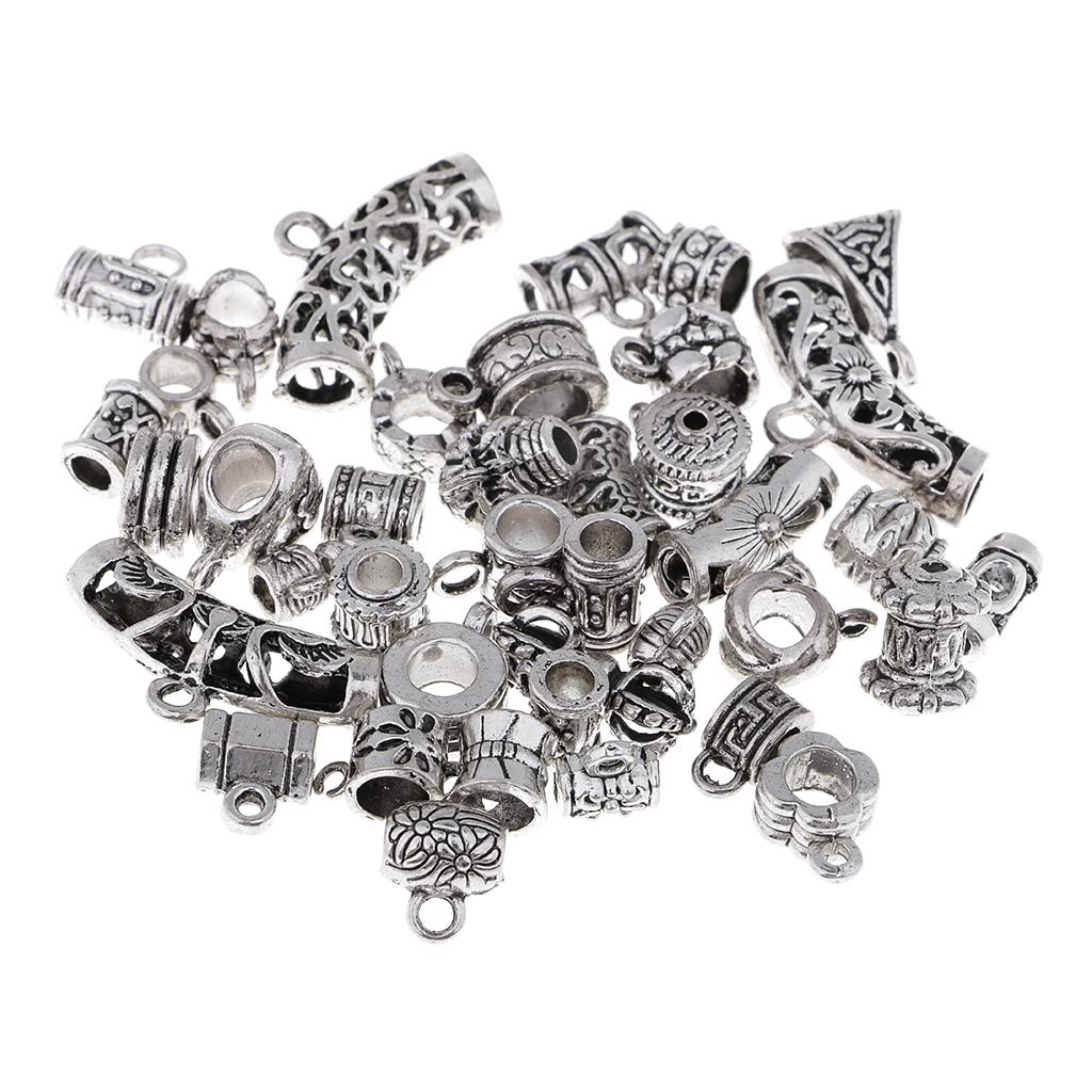 40 Pcs Mixed Tibetan Silver Bail Tube Bead,Spacer Bead,Bail Bead Connectors.