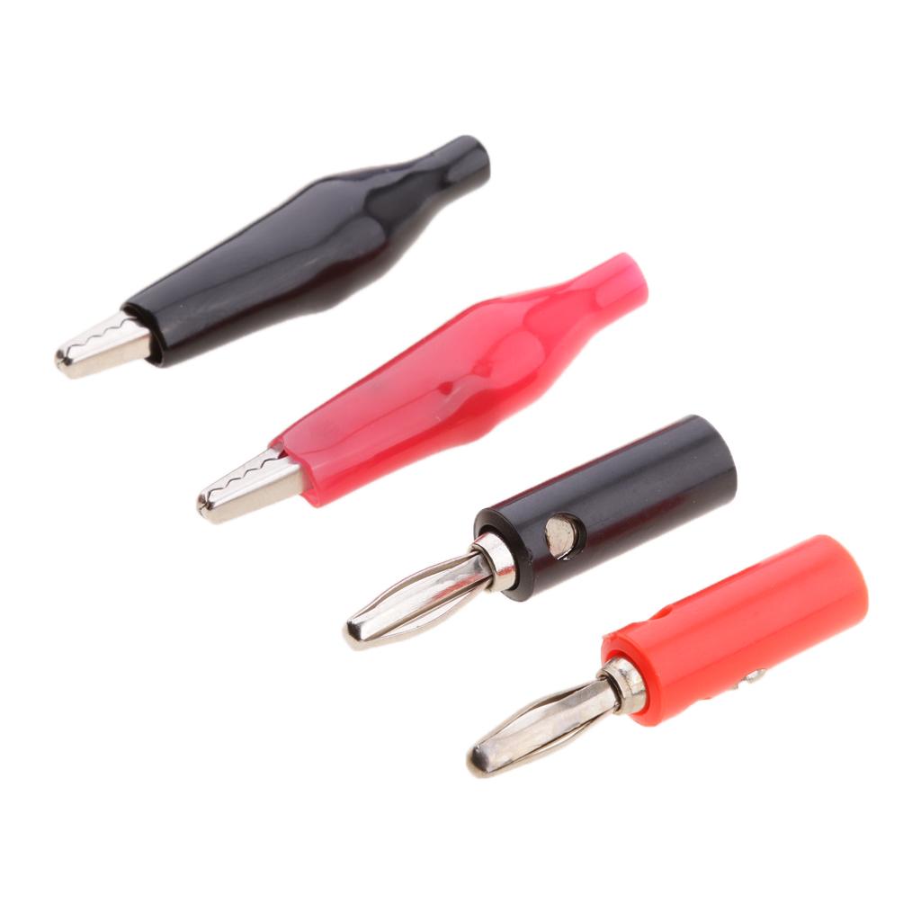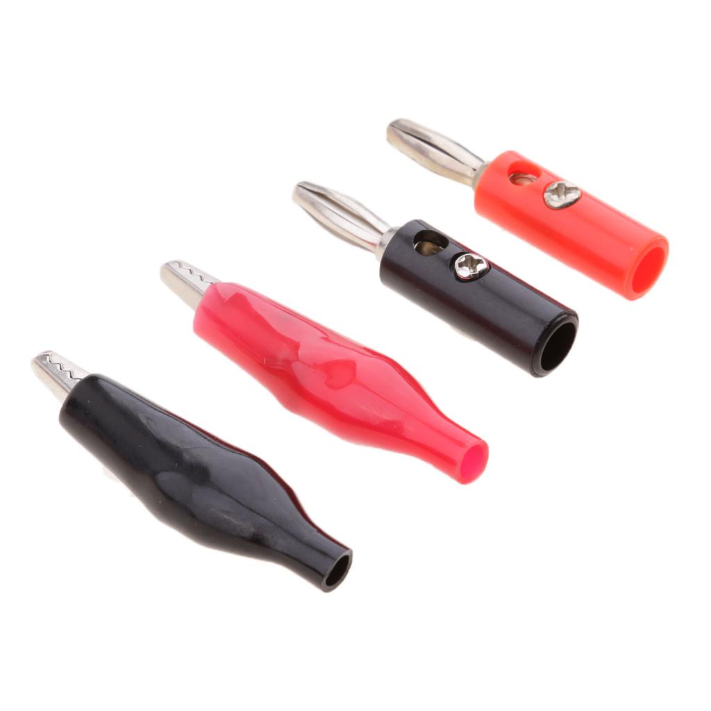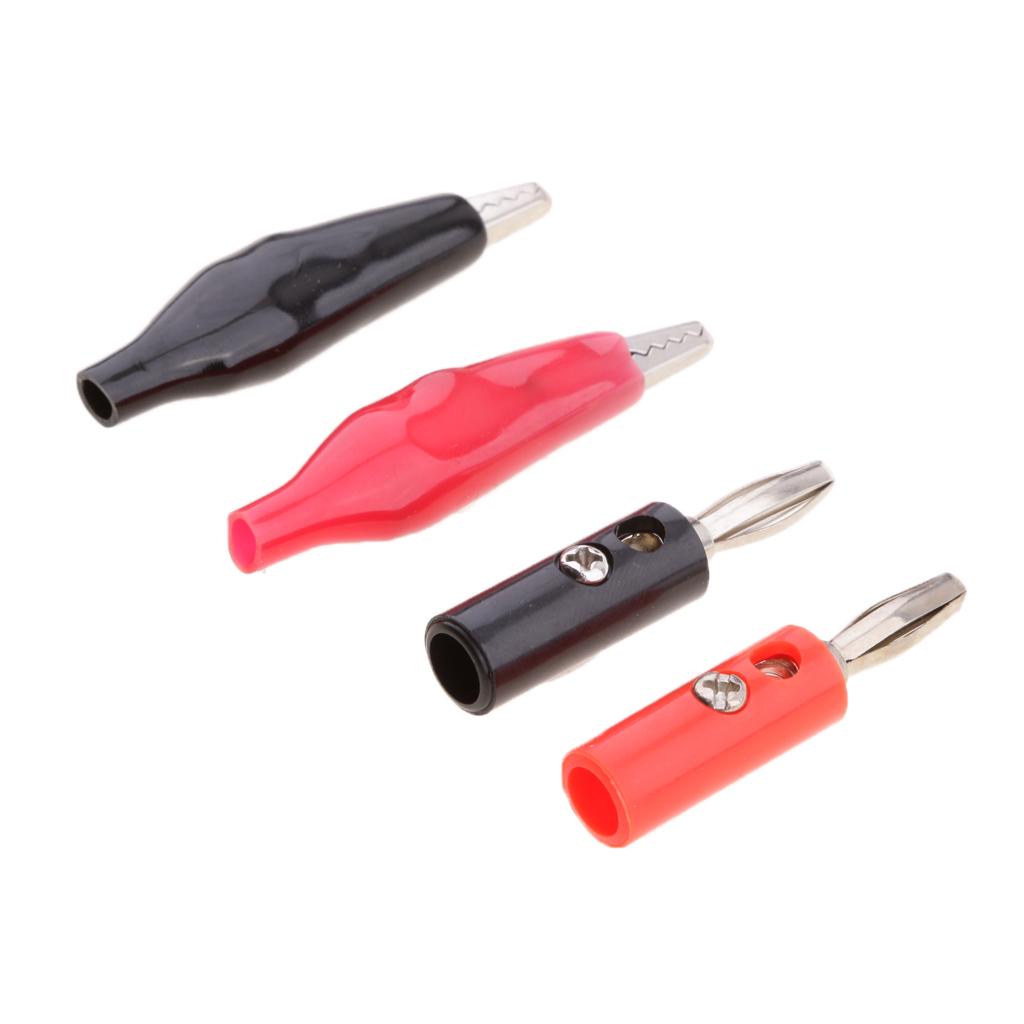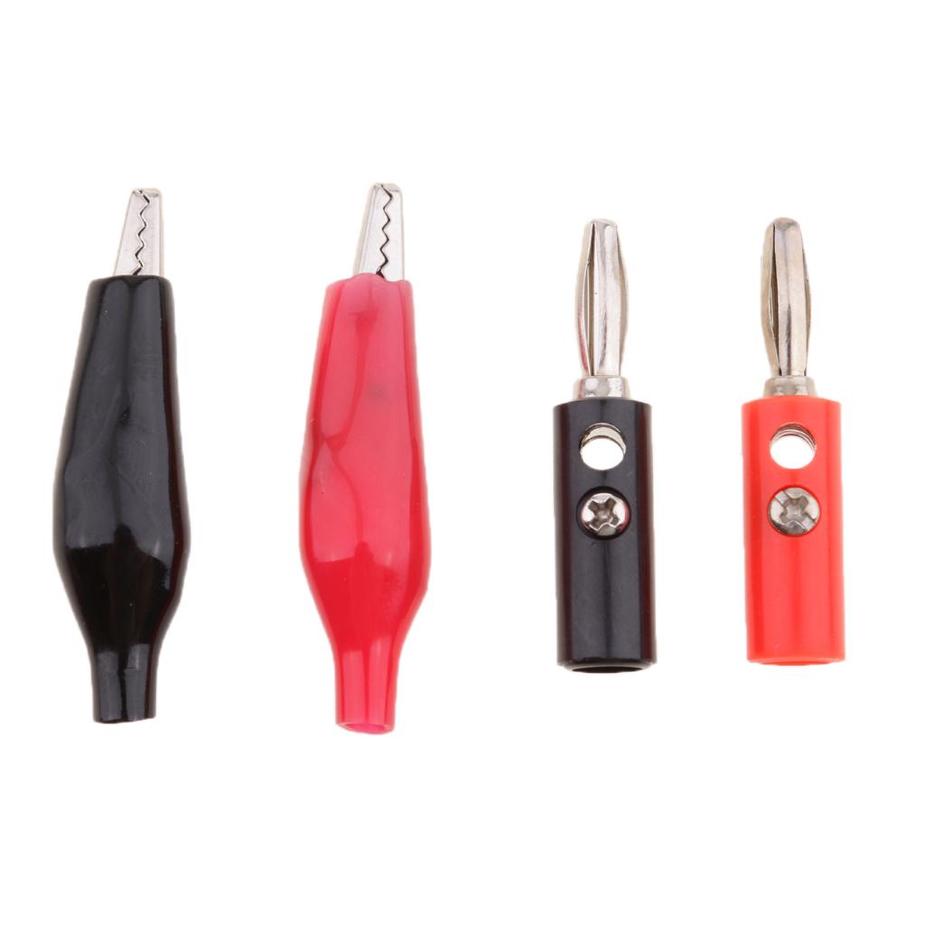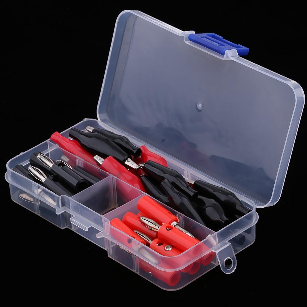 Varied alligator clips and Stackable banana Male Plug Jack Connector assortment, red and black, for home, automotive applications.