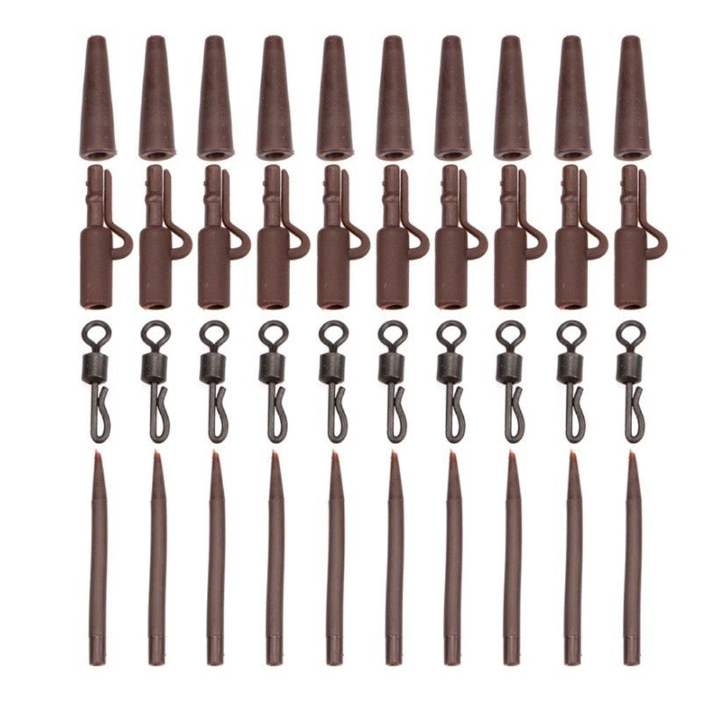 40pcs Carp Fishing Tackle Safety Lead Clips Quick Swivels Anti-Tangle Sleeve Kit