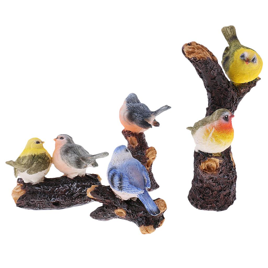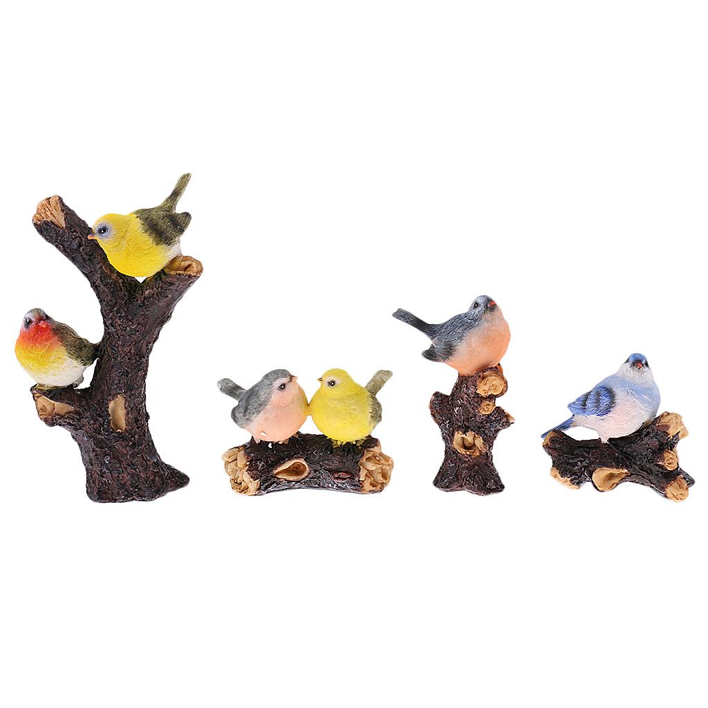 4pcs Birds Ornament Statue Resin Animal Miniature Home Garden Cafe Bar Decor