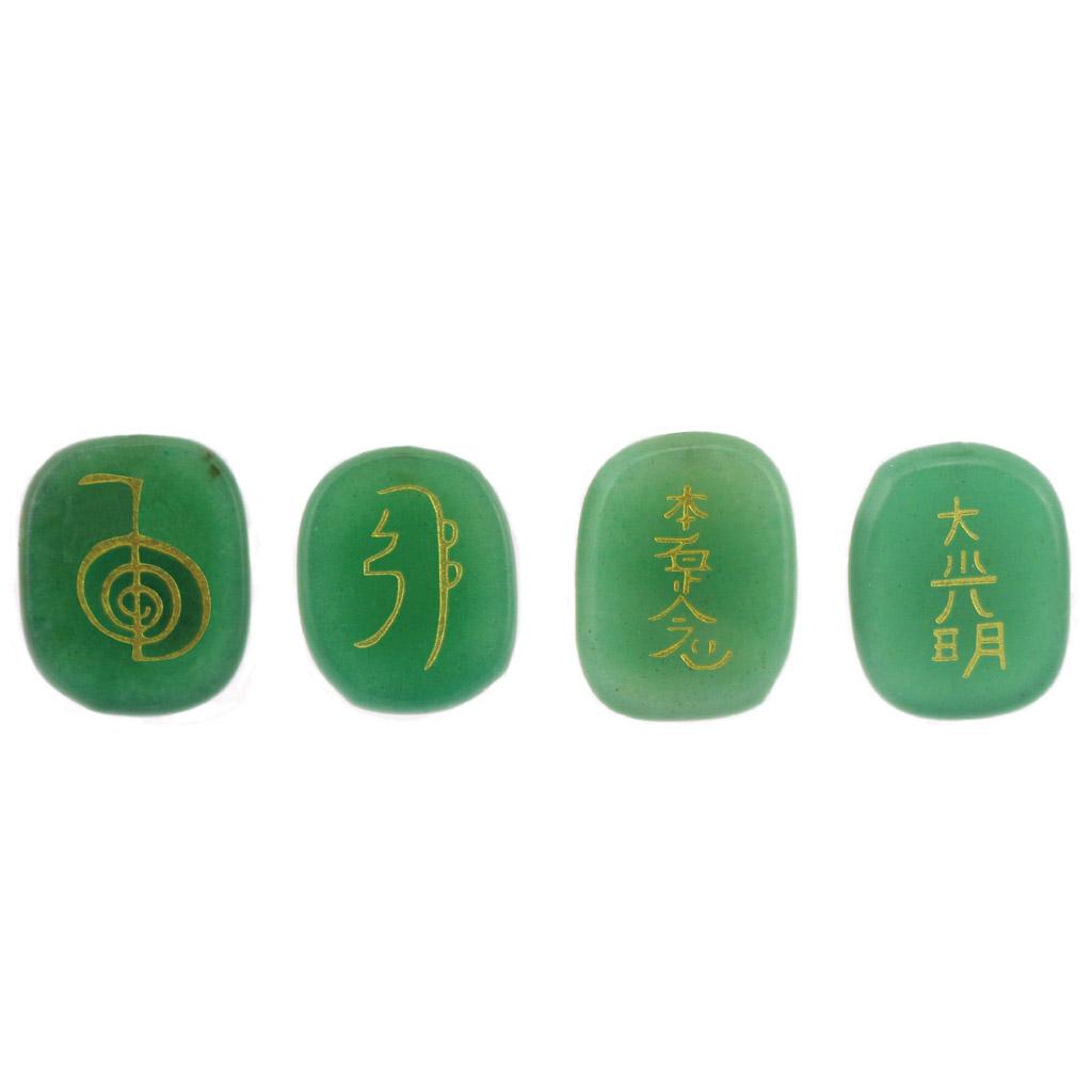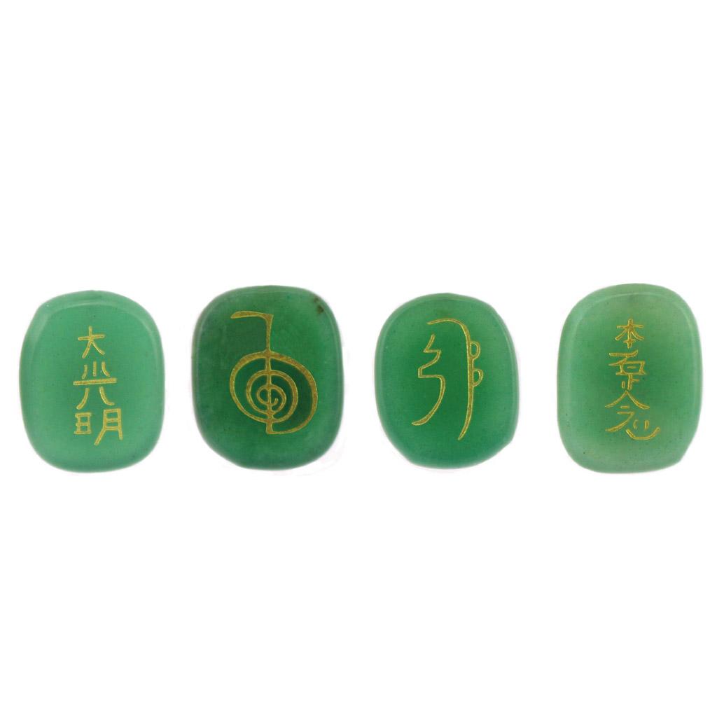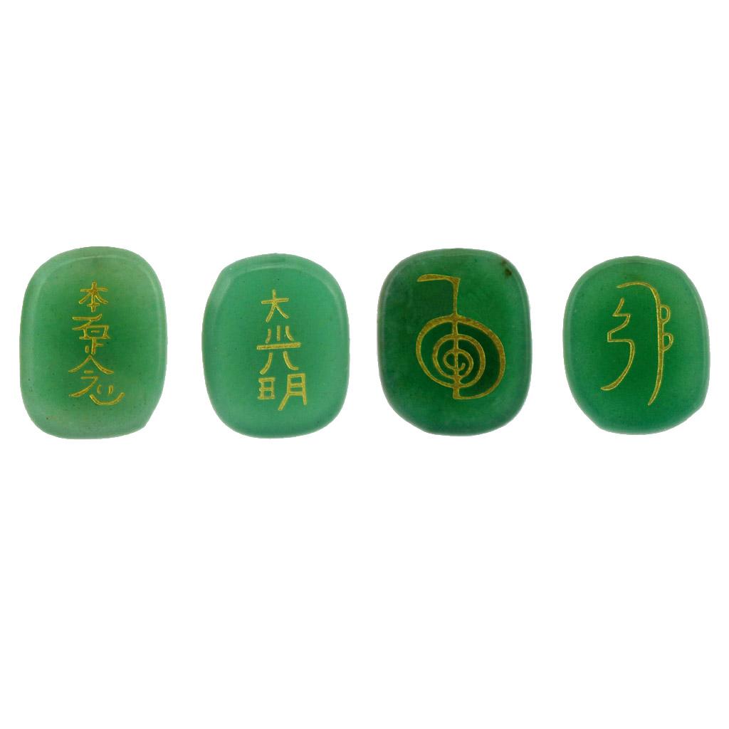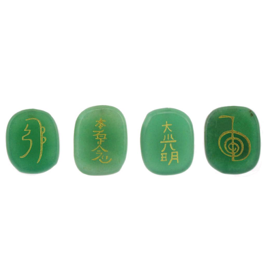 4pcs Engraved Green Aventurine Reiki Energy Crystal Stones