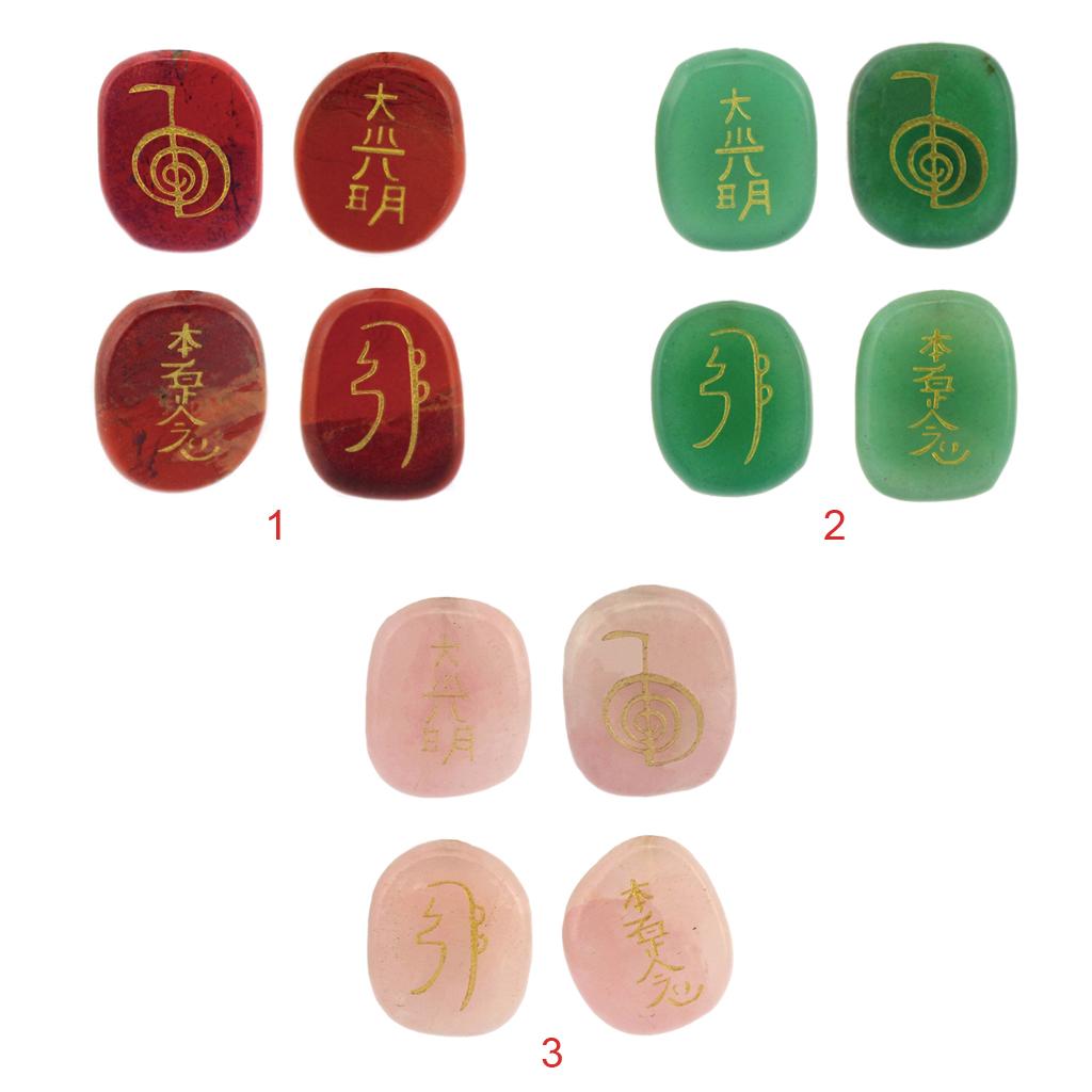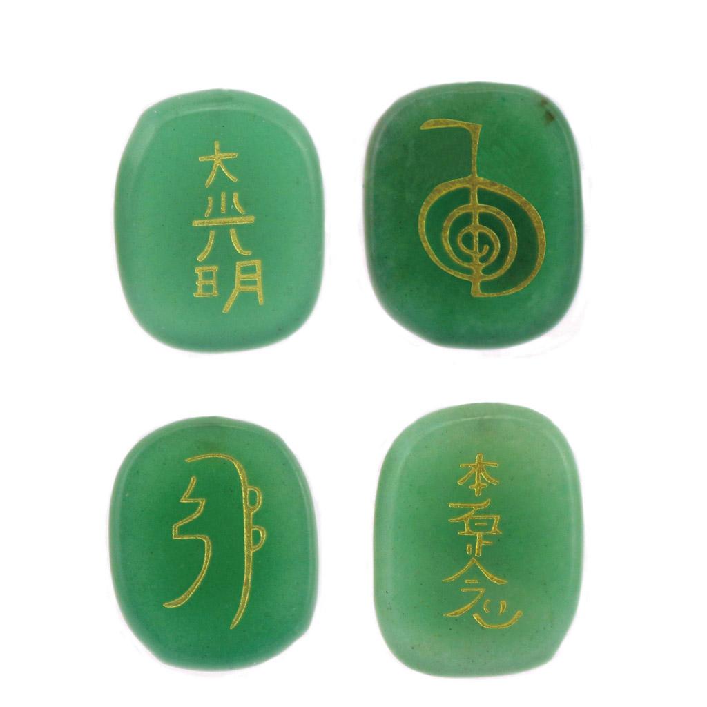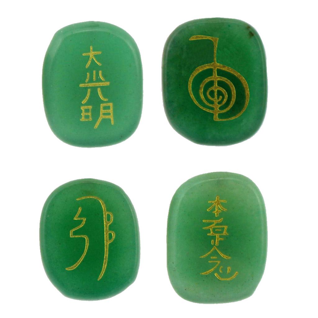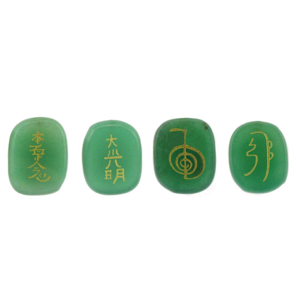4pcs Engraved Green Aventurine Reiki Energy Crystal Stones