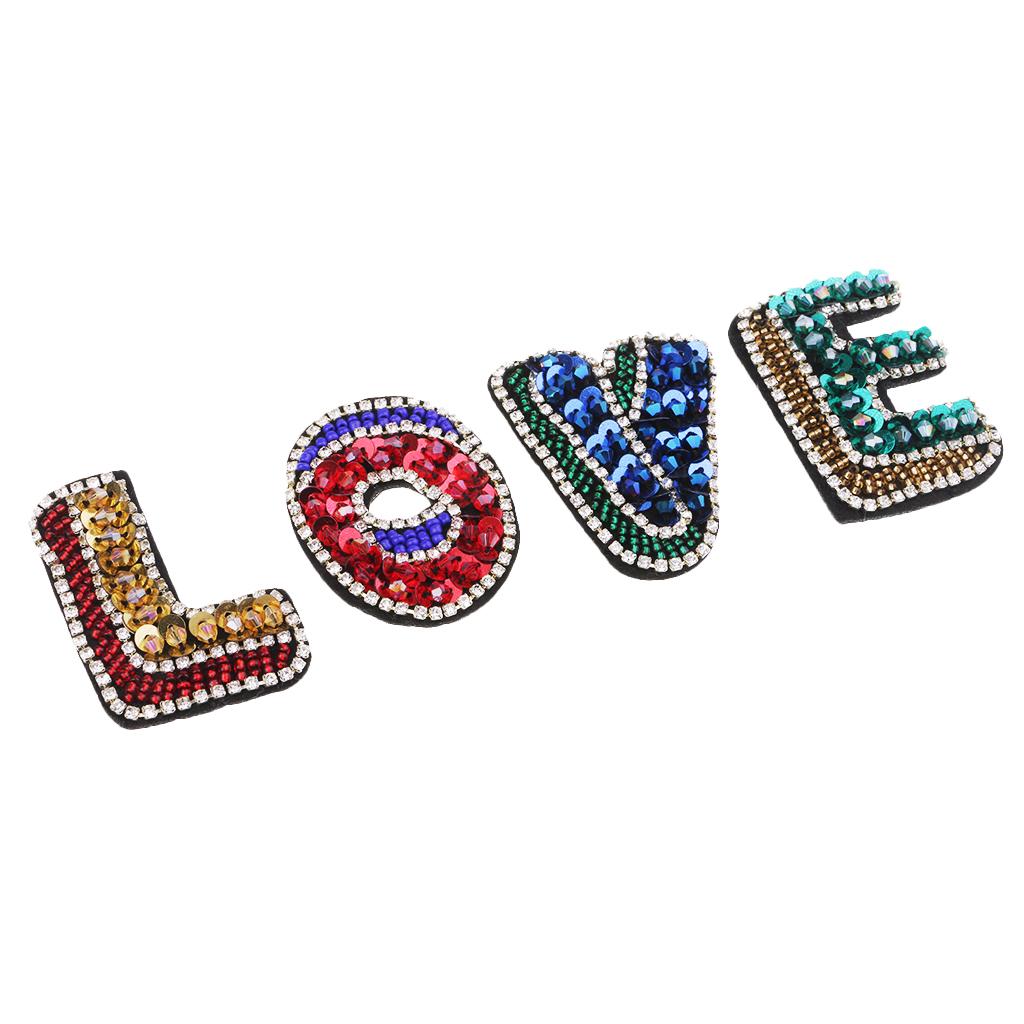 4Pcs Letter Love Patches DIY Sequins Sewing Apparel Supplies for Bag Dress Beaded Crystal Motif Appliques