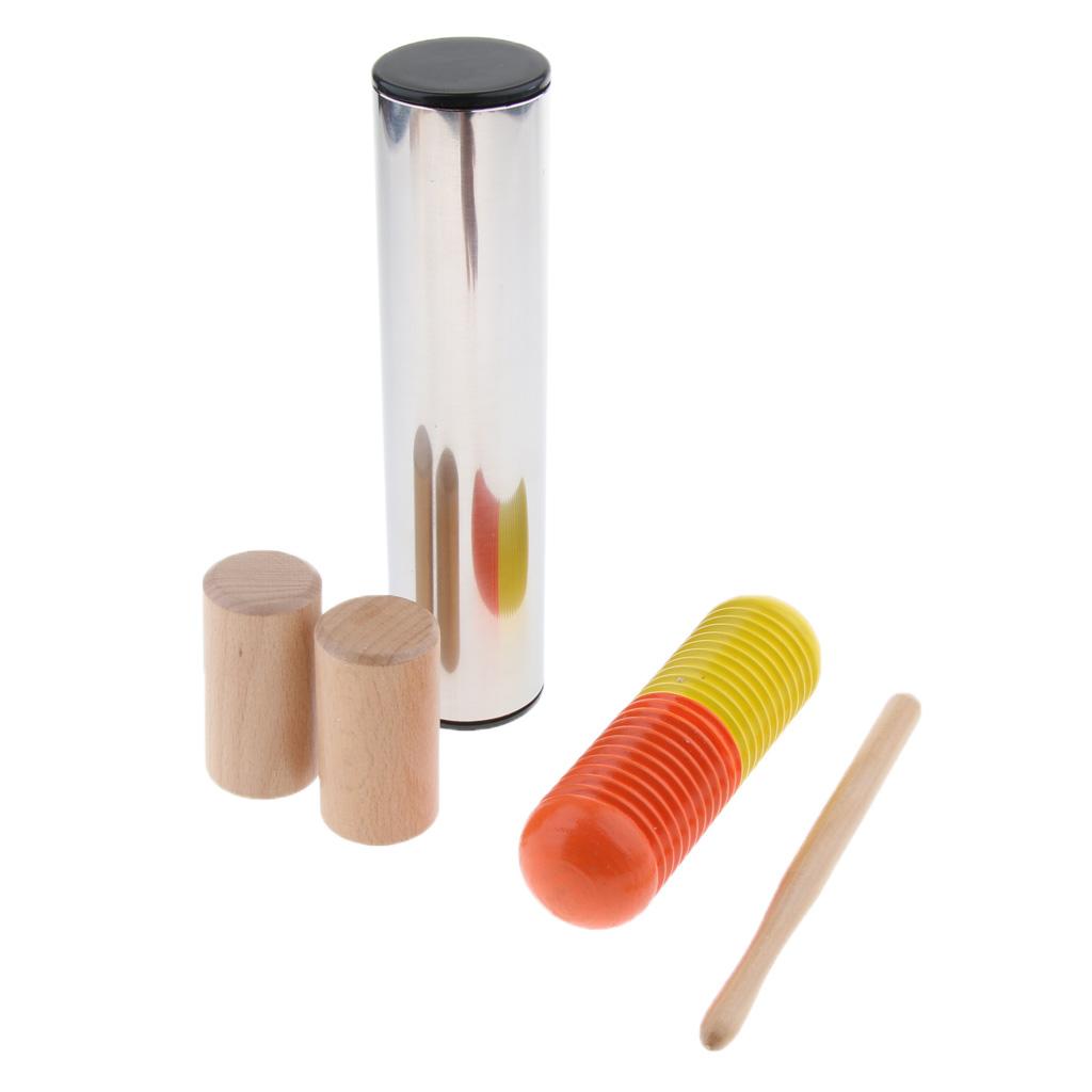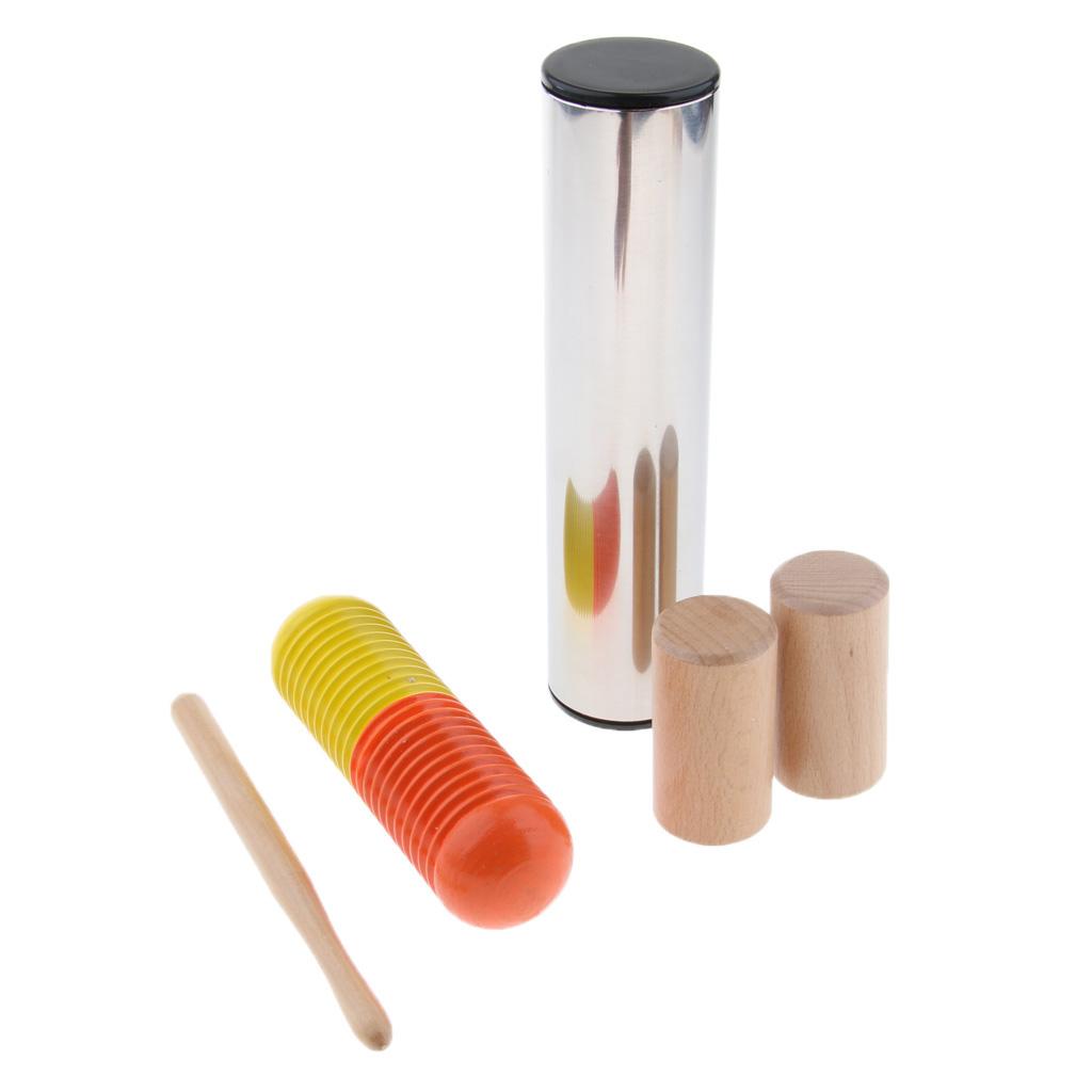 5 Pieces Music Percussion Toys Set With Wood &Metal Sand Shakers Maracas Cabasa , Rattle Shakers Musical Educational Toys for Kids