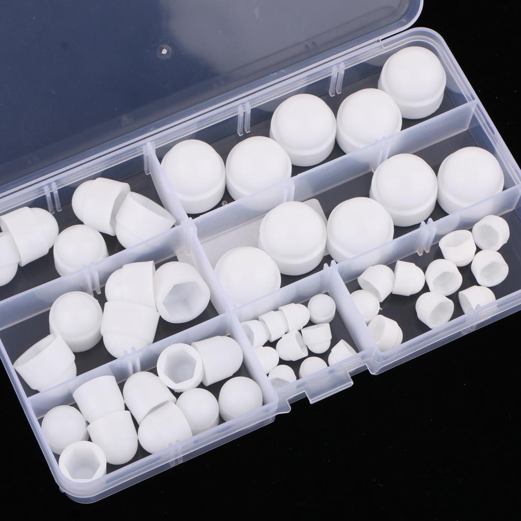 50 Pieces M5 M6 M8 M10 Nut & Bolt Dome Cover Caps Hex Plastic White