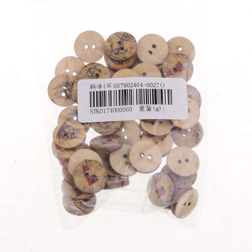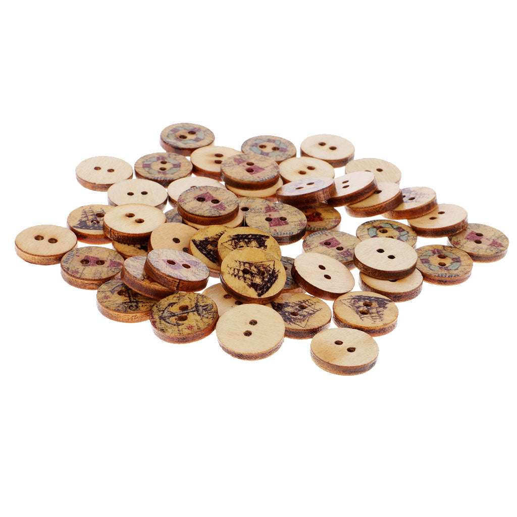 50 Pieces Wood Buttons
