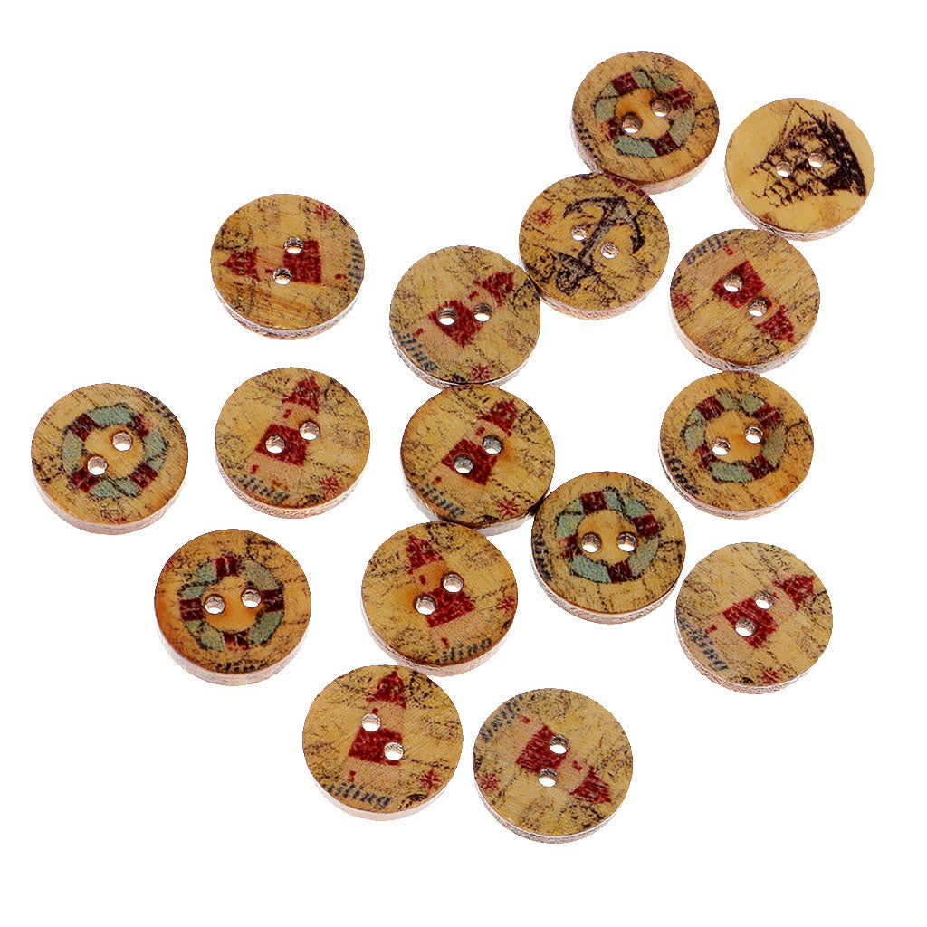 Wood Round 2 Holes Sailing Pattern Buttons