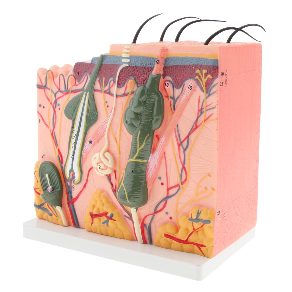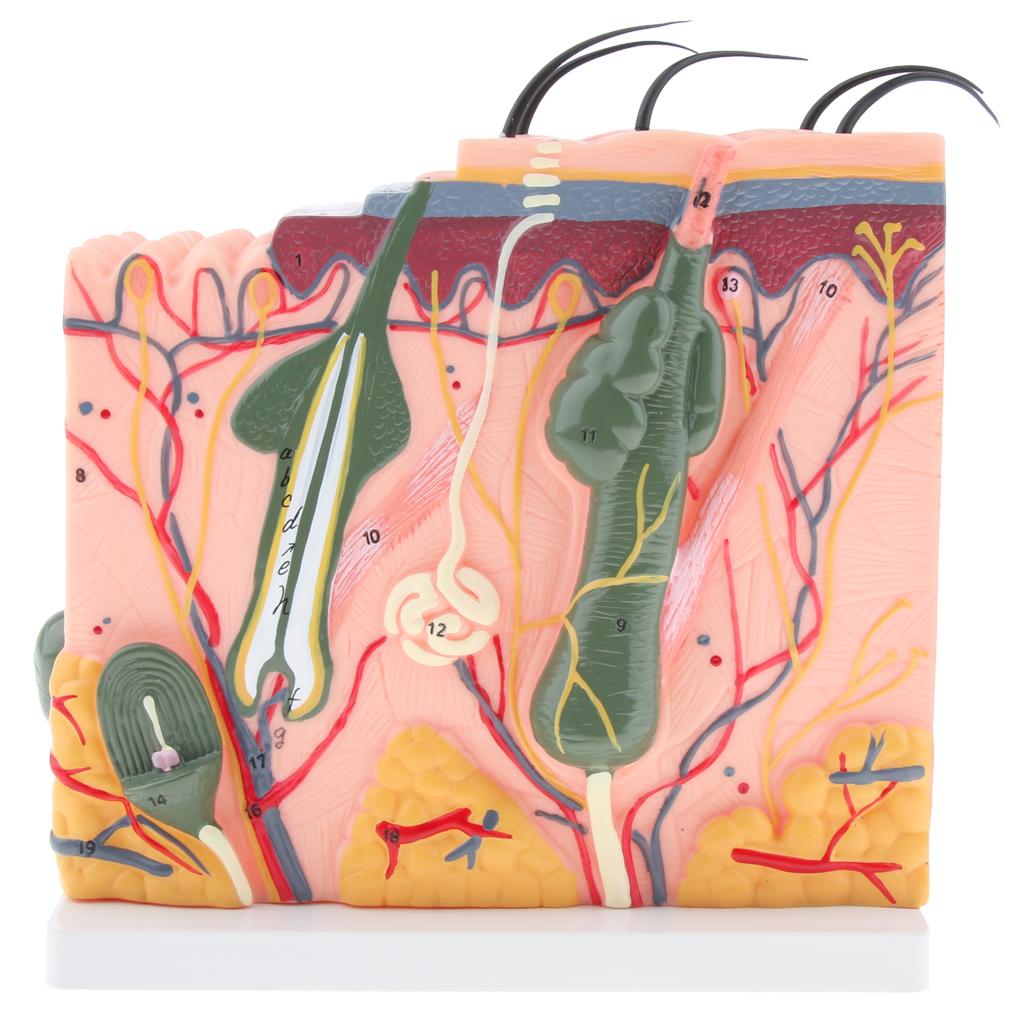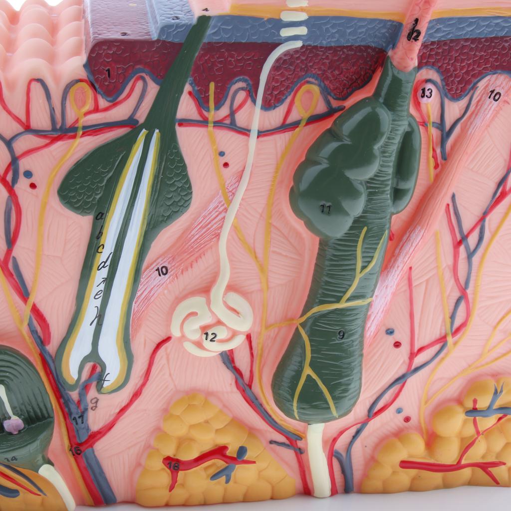 Clearly shows the three layers of the skin, hair follicles, sweat glands, adipose tissue, etc. Inseparable.