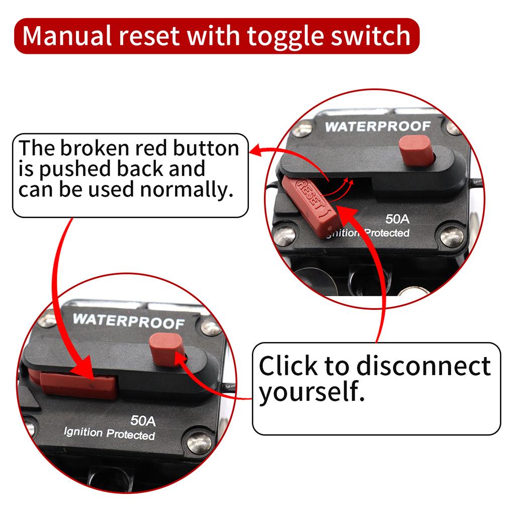 50A Circuit Breaker with Manual Reset IP67 Waterproof for Marine Car RV