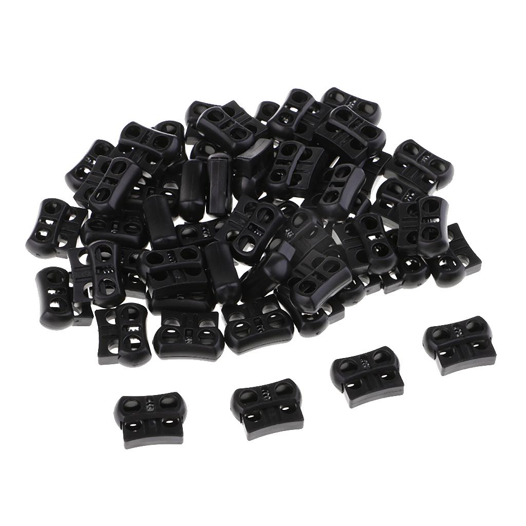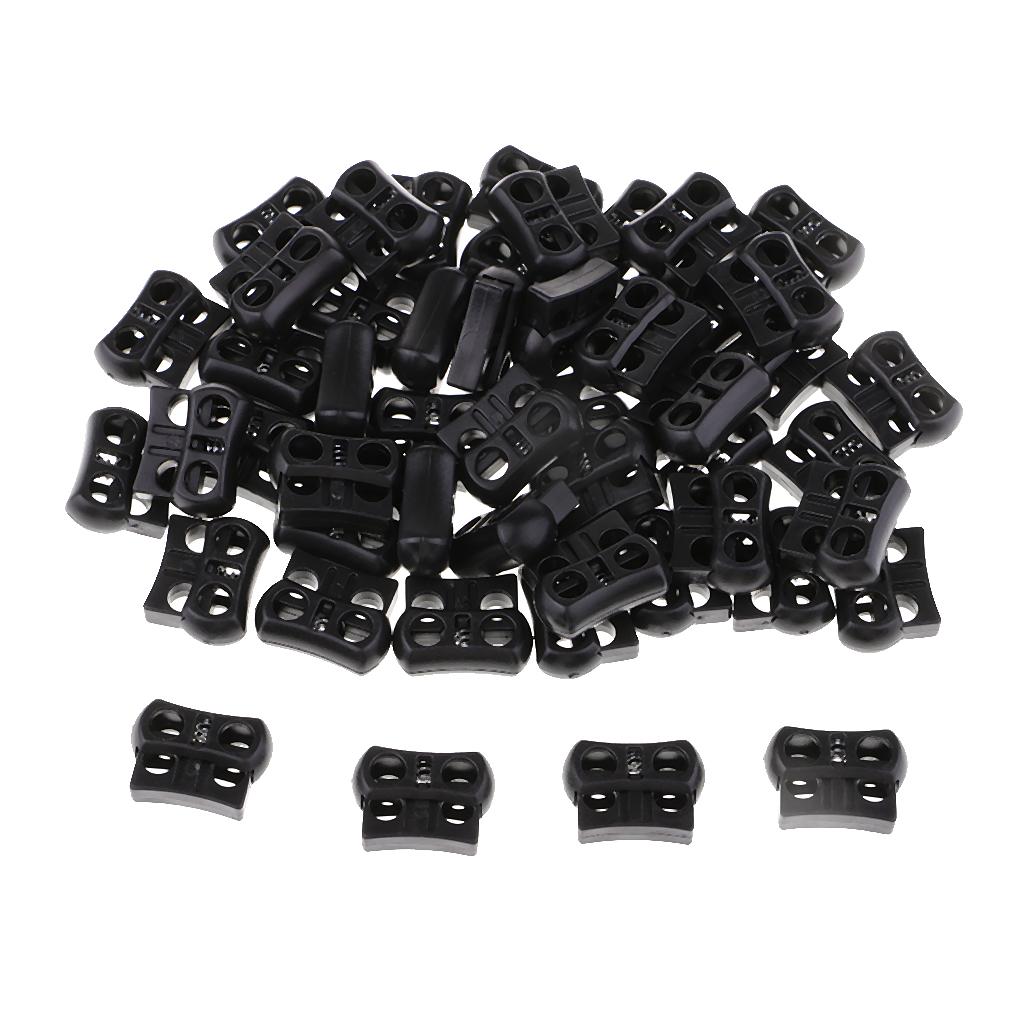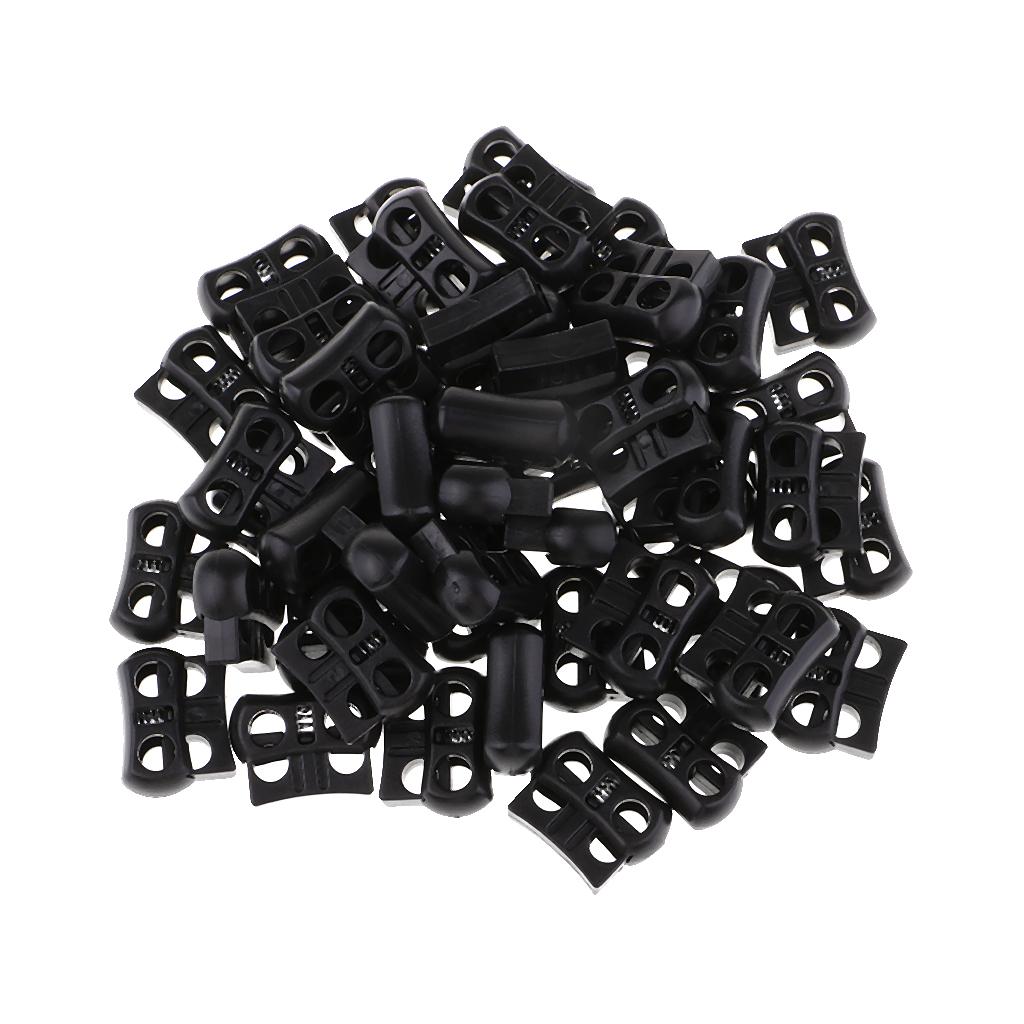50pcs Plastic Toggle Spring Stop Double Holes String Cord Locks for Shoelace