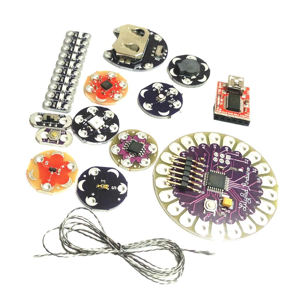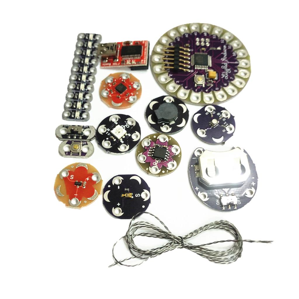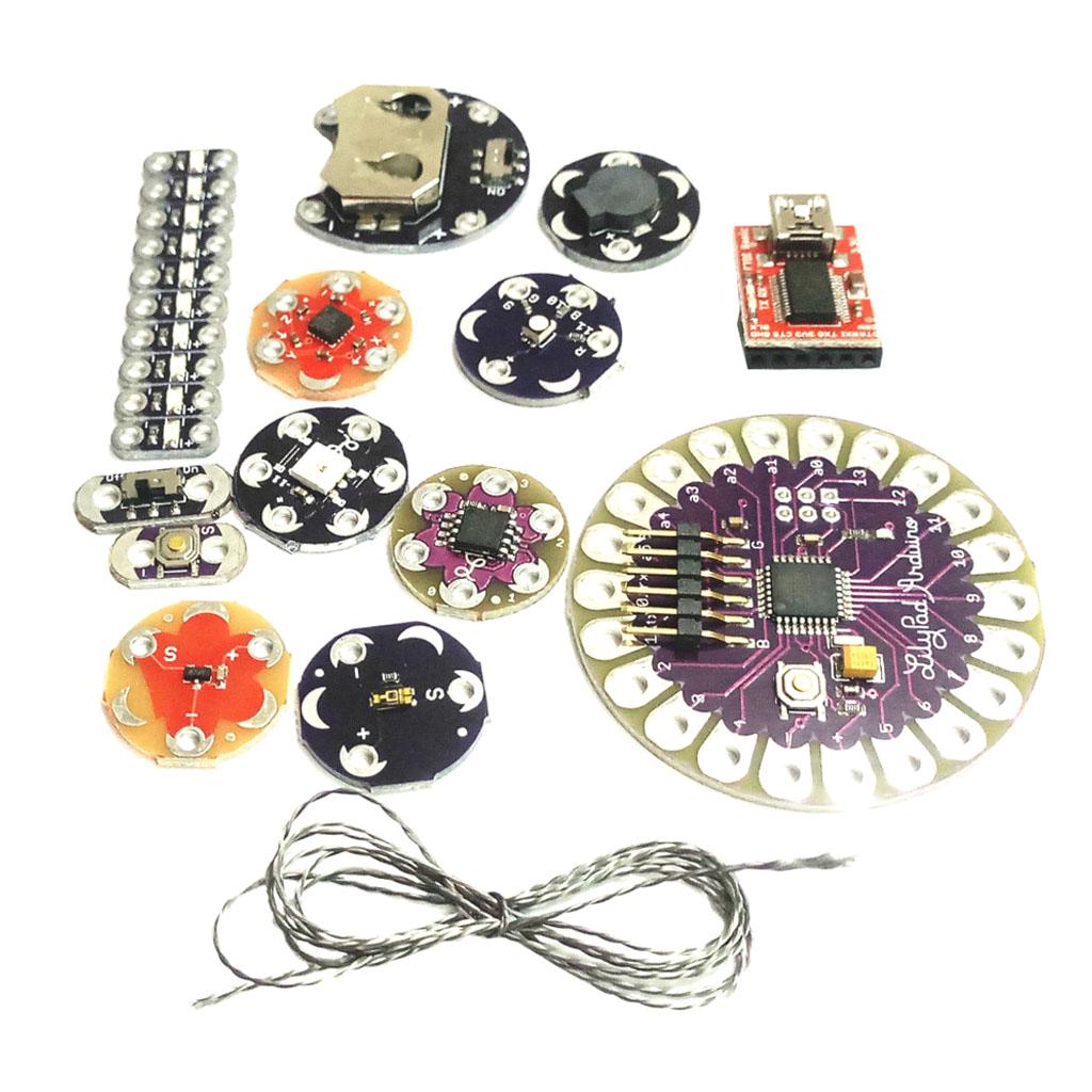 Lilypad Arduino Kit (LEDs+ATmega328P+Pixel Board+Temp Sensor+FT232RL Module+Battery Holder+line+Buzzer+Button Board+Accele Sensor+Switch)