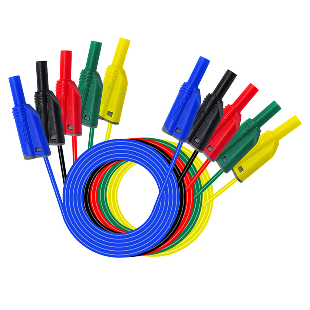 5 pieces 5 Colors 4mm Banana to Banana Plug Soft Test Cable Lead for multimeter.