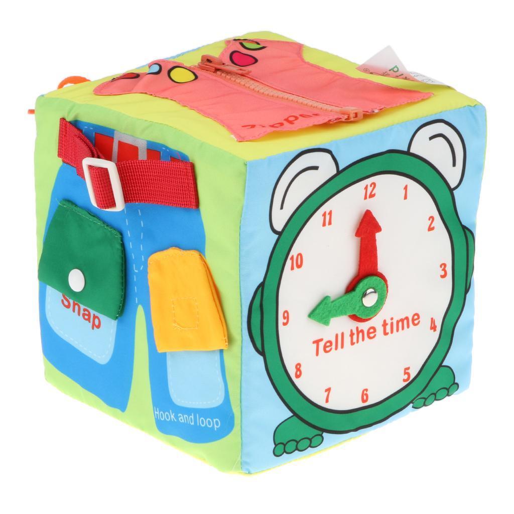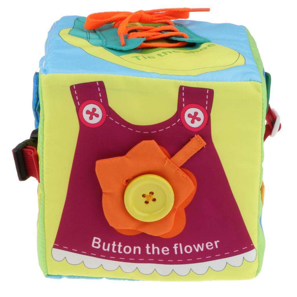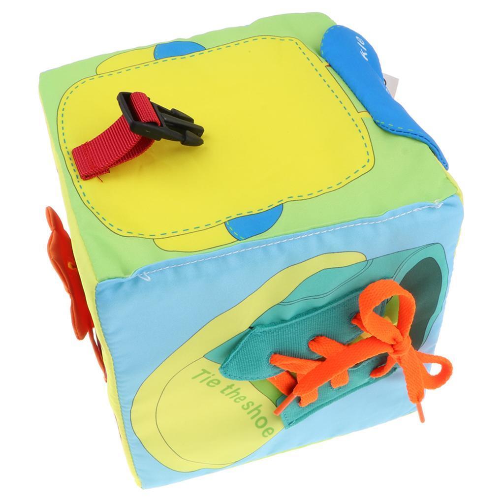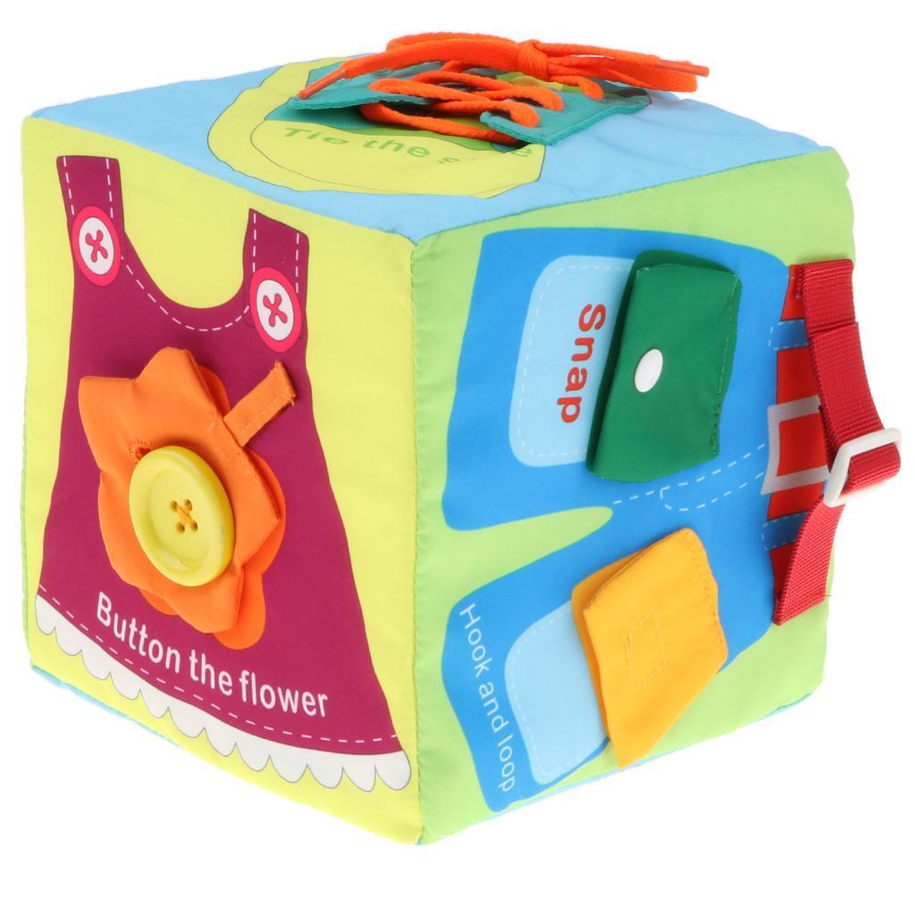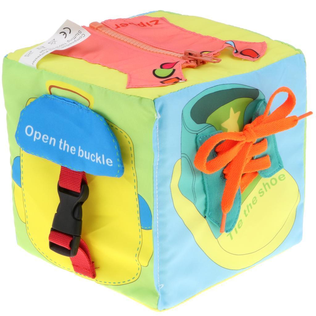 Early Learning Basic Life Skills Cube Toy - Zip, Snap, Button, Buckle, Lace and Tie puzzle