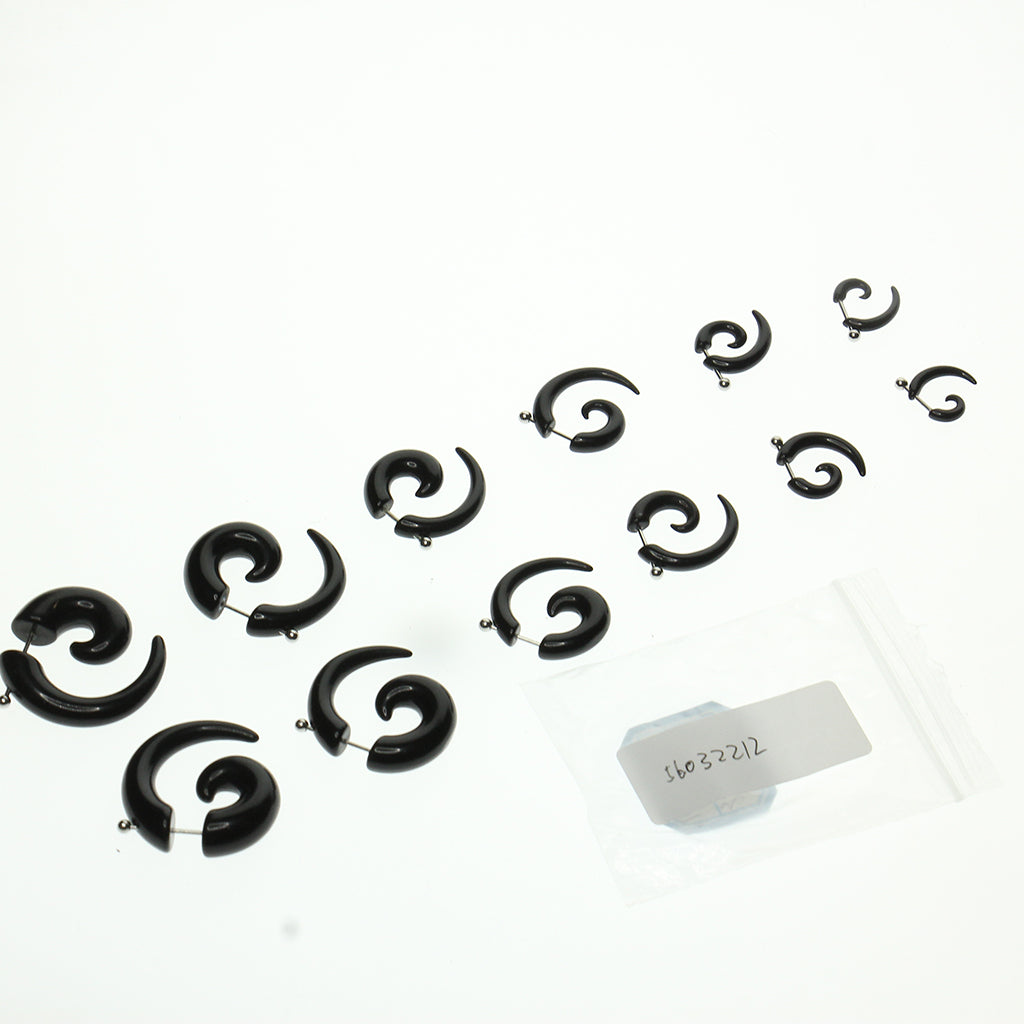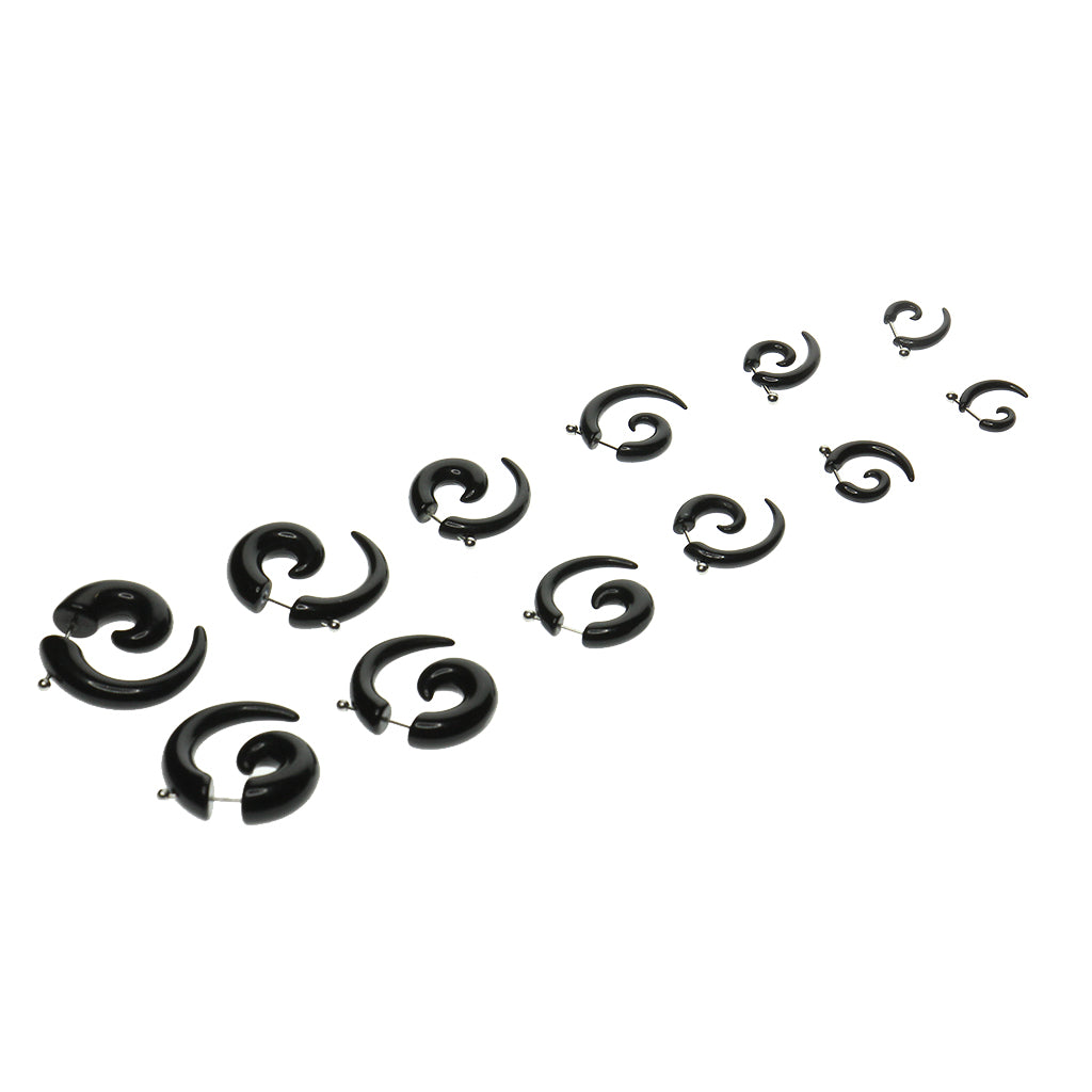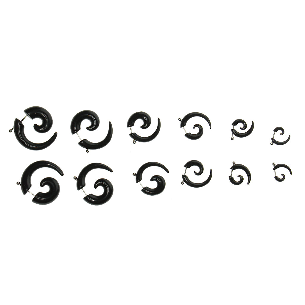 6 Pairs assorted size 3mm(8G),4mm(6G),5mm(4G),6mm(2G),8mm(0G),10mm(00G) illusion spiral snail ear expander stud earring with 16 gauge stainless steel studs.