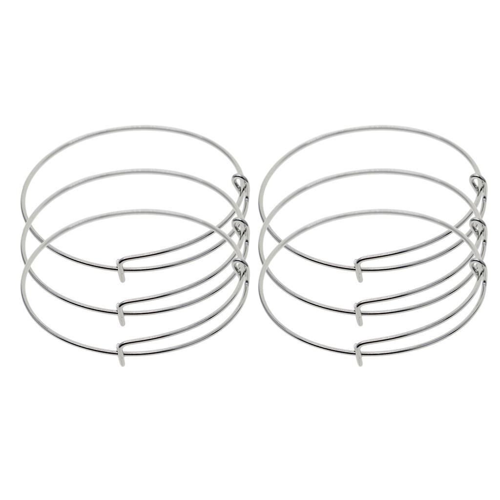 6 Pieces Adjustable Brass Wire Bangle (without charms pendants)