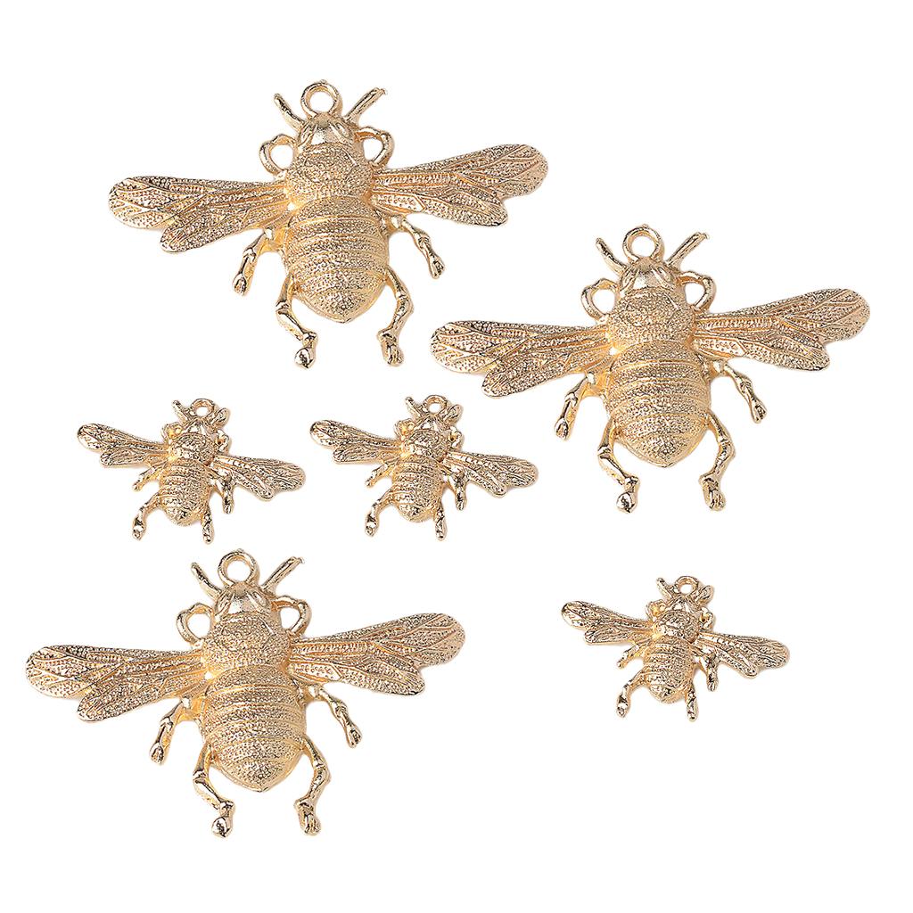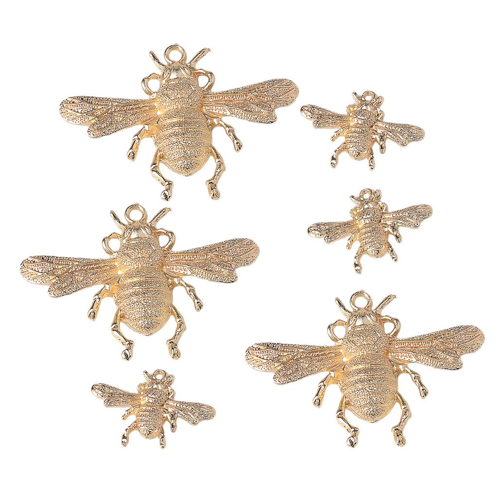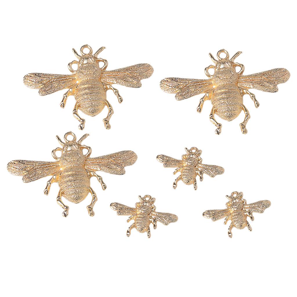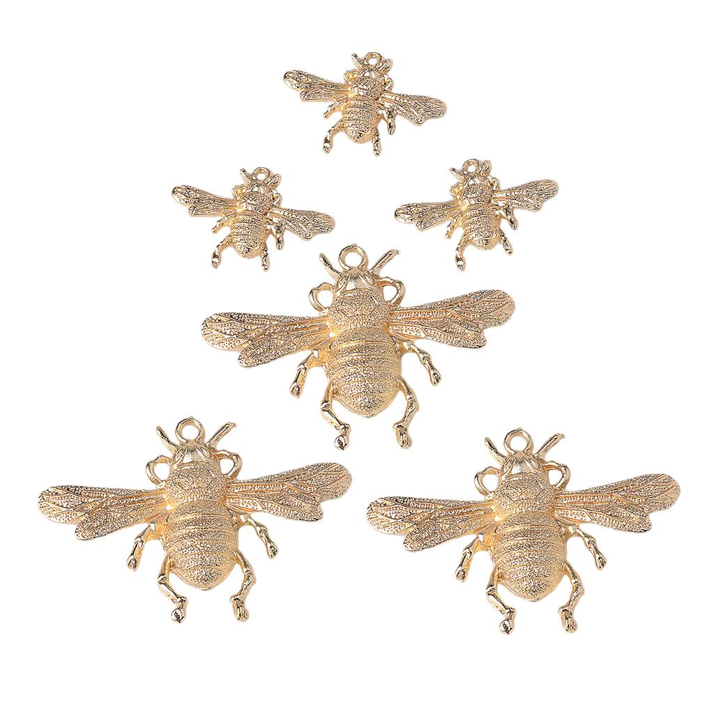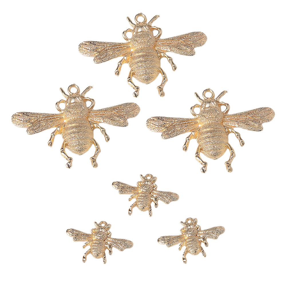 6 Pieces Gold Plated Metal Bee Charms Alloy Flatback Craft Sewing Buttons for Garment Bags Shoes Applique Decorations DIY Scrapbooking Embellishment, 2.8 x 2.0 cm - 5.6 x 4.0cm