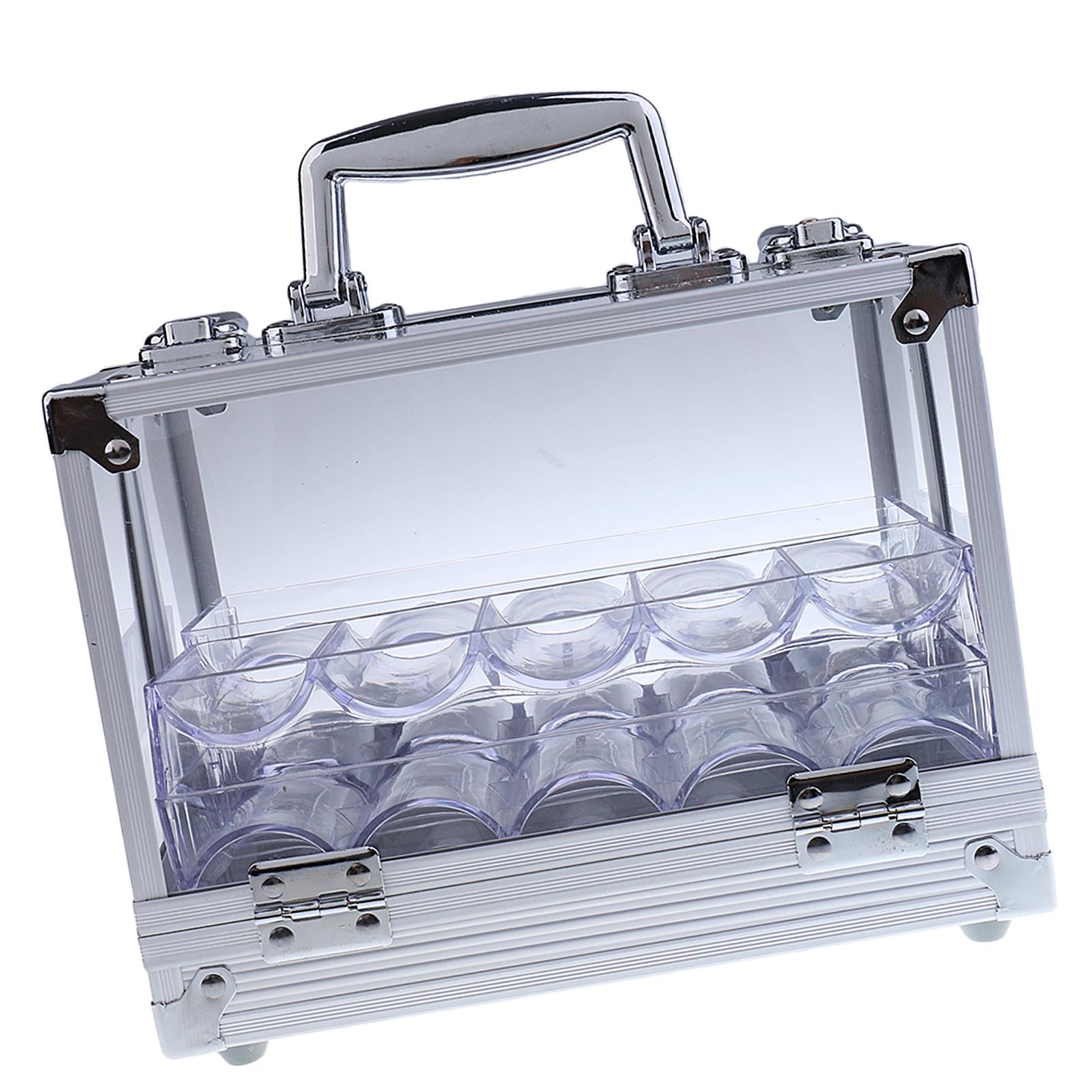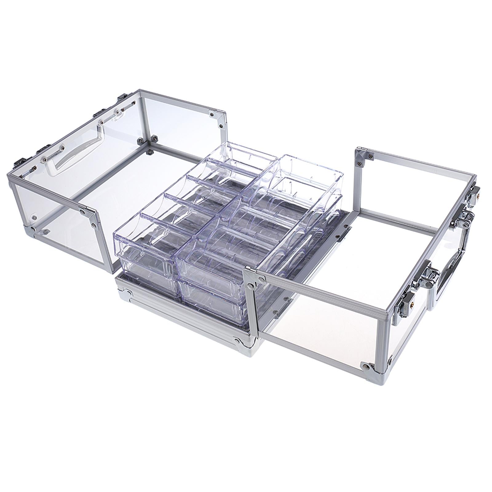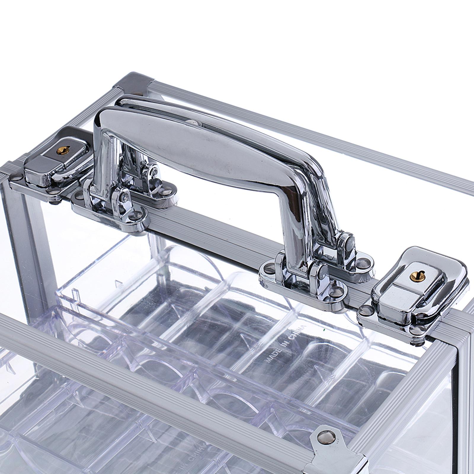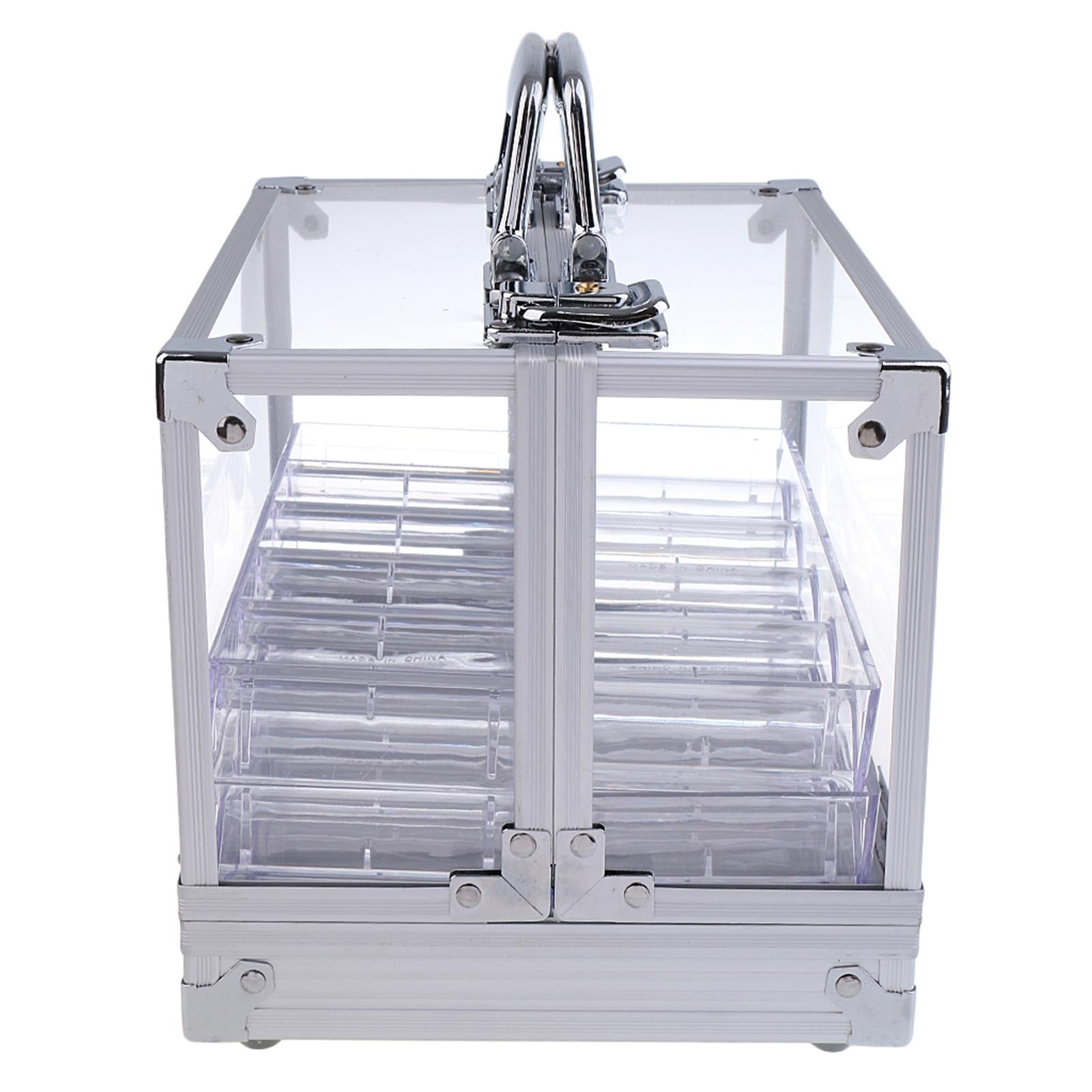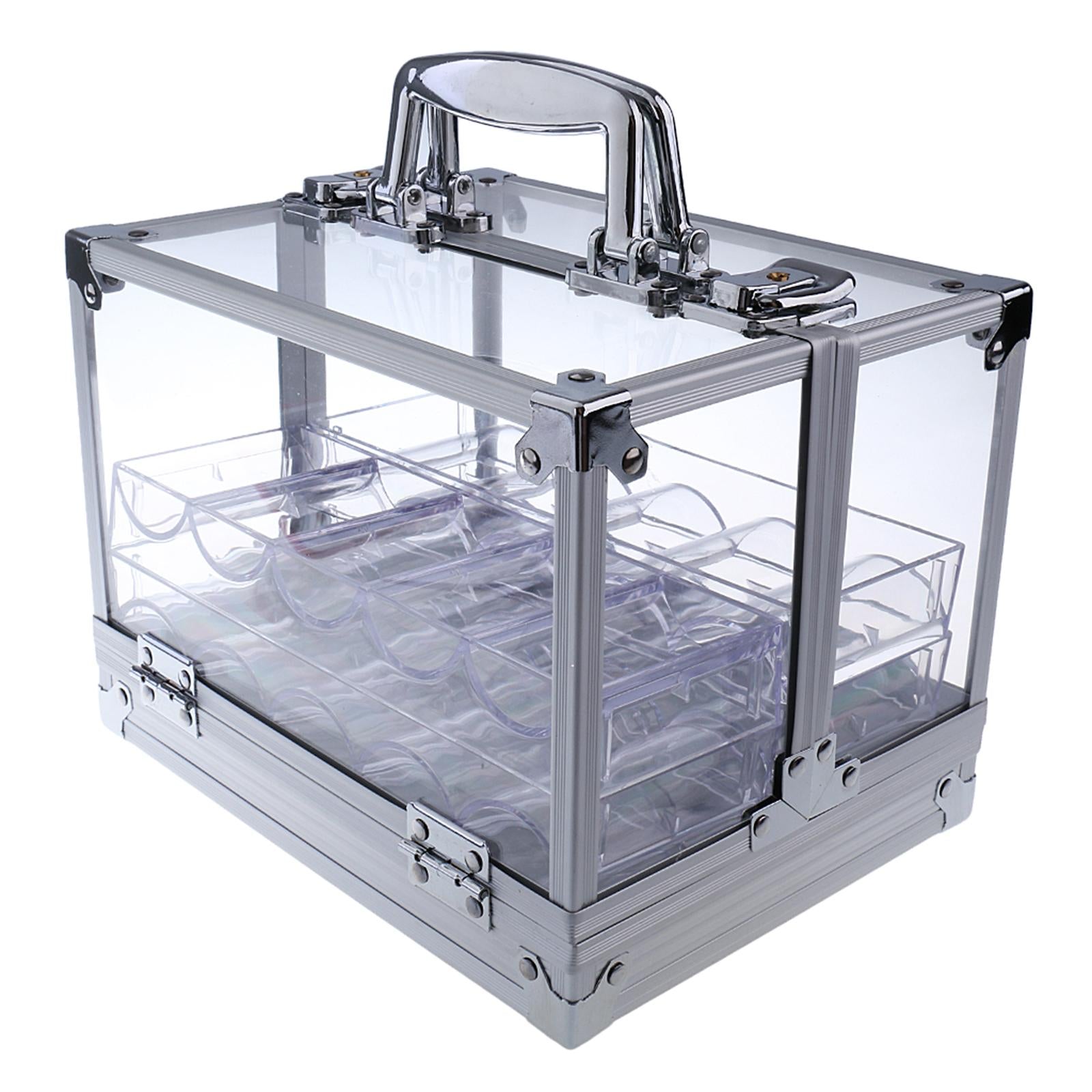 600pc Transparent Empty Acrylic Carrier Poker Chips Storage Box Case with 6 Racks