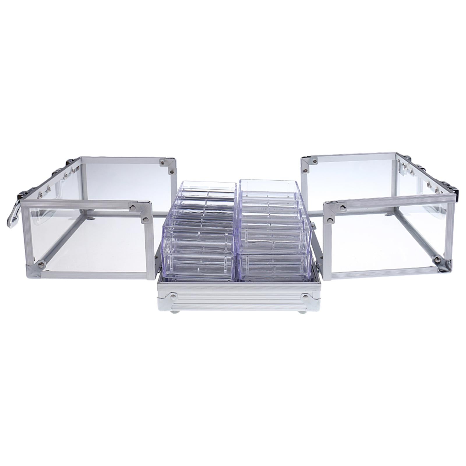 600PCS Portable Poker Chips Suitcase Large Cases with 6 Racks Acrylic Transparent Double Open Coin Boxes