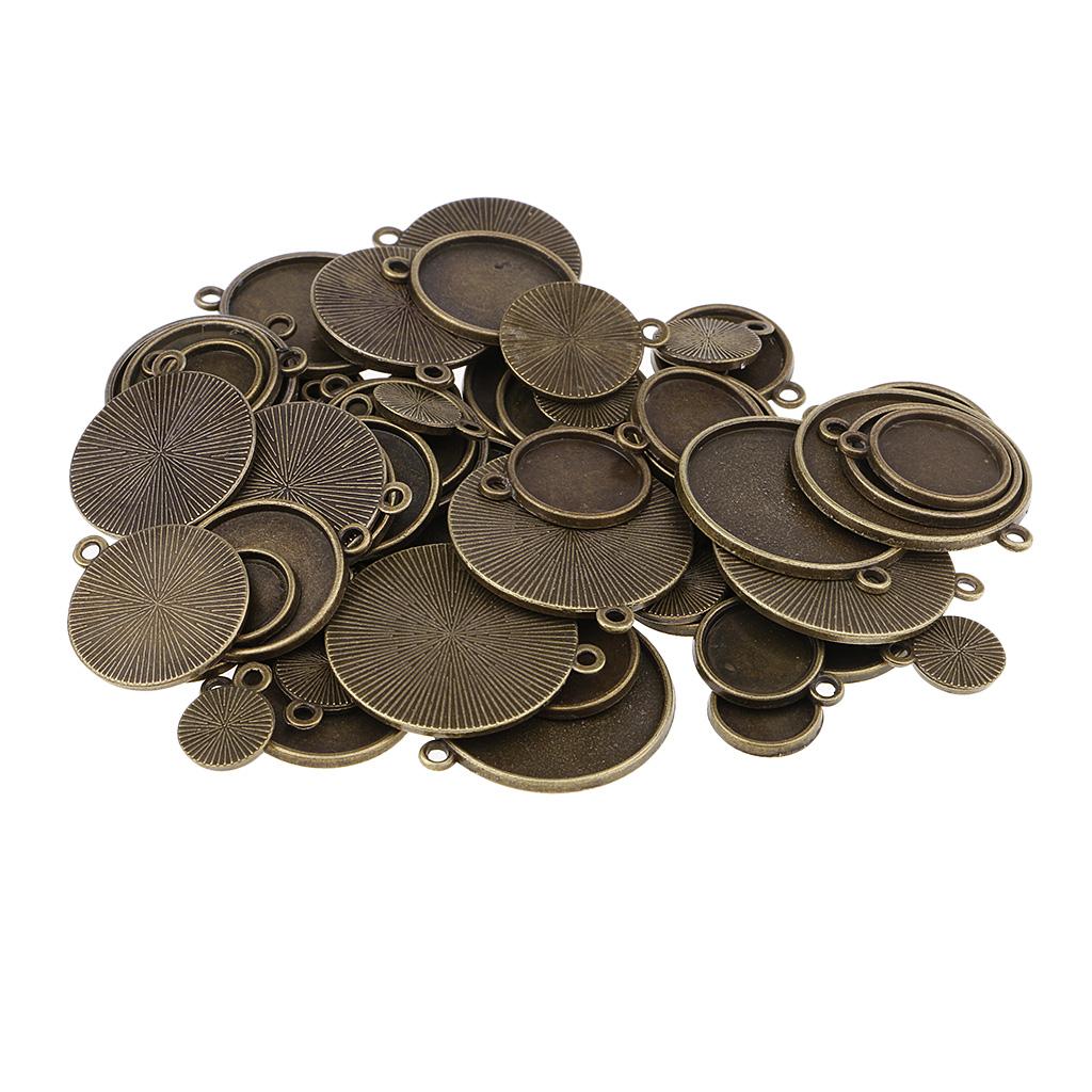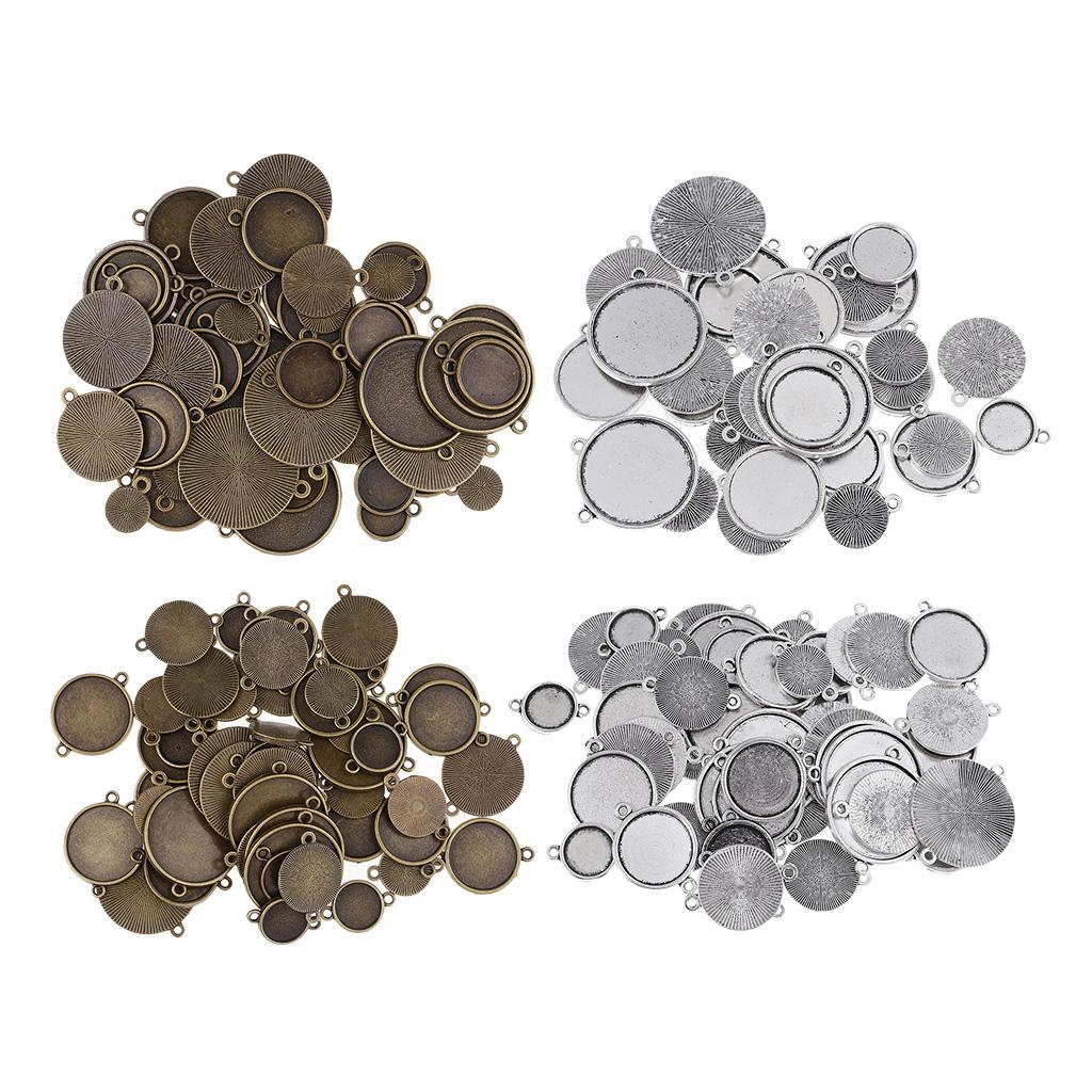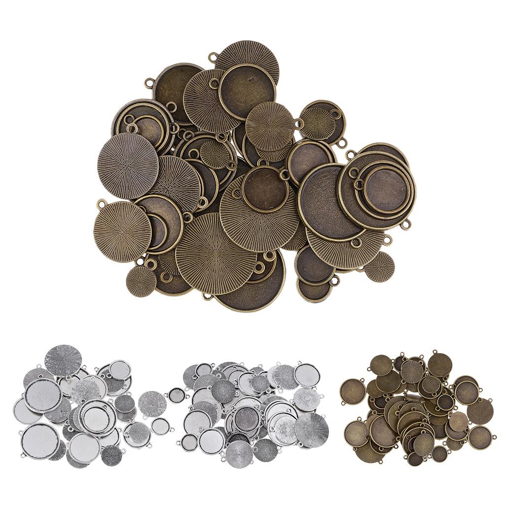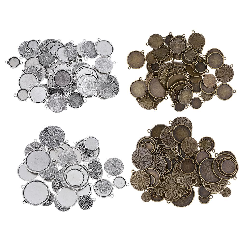 64 Pieces Assorted Antique Bronze Blank Bezel Pendant Trays Double Loops Round Cabochon Settings Trays Base Pendant Blanks DIY Jewelry Making Findings