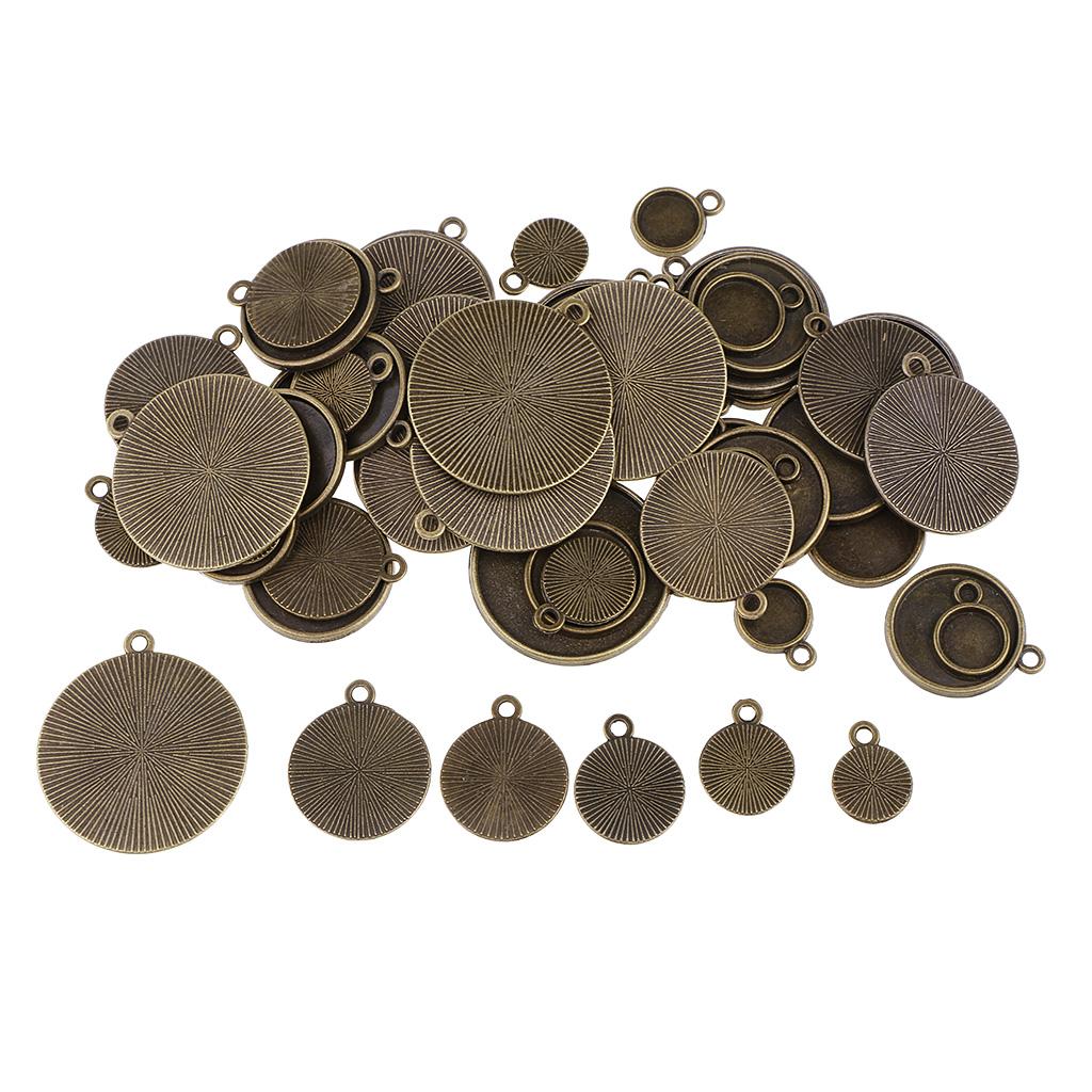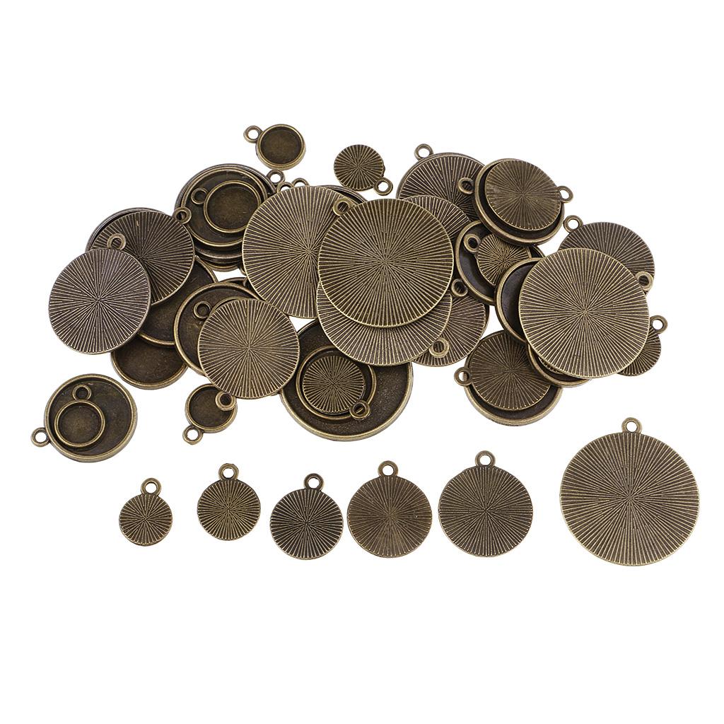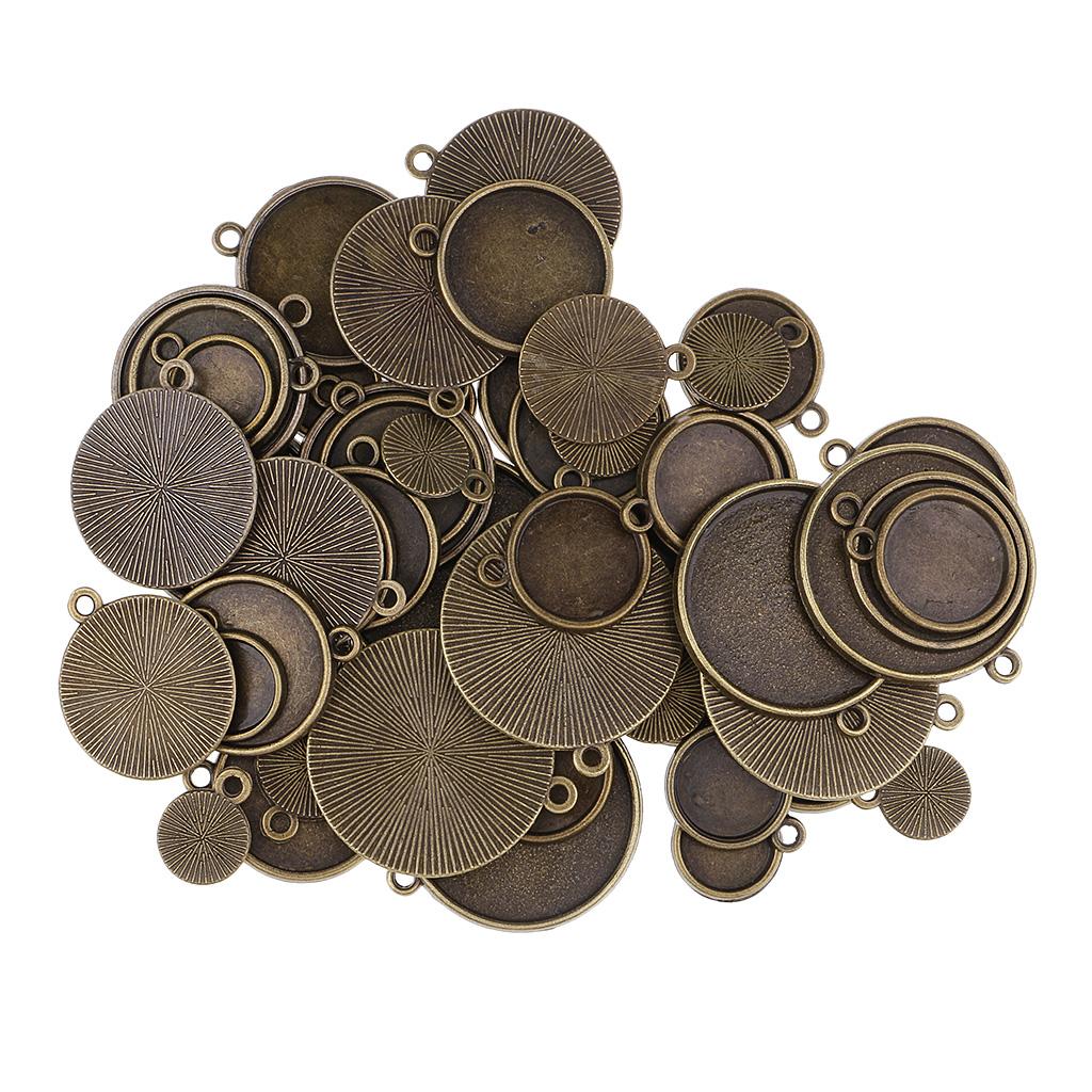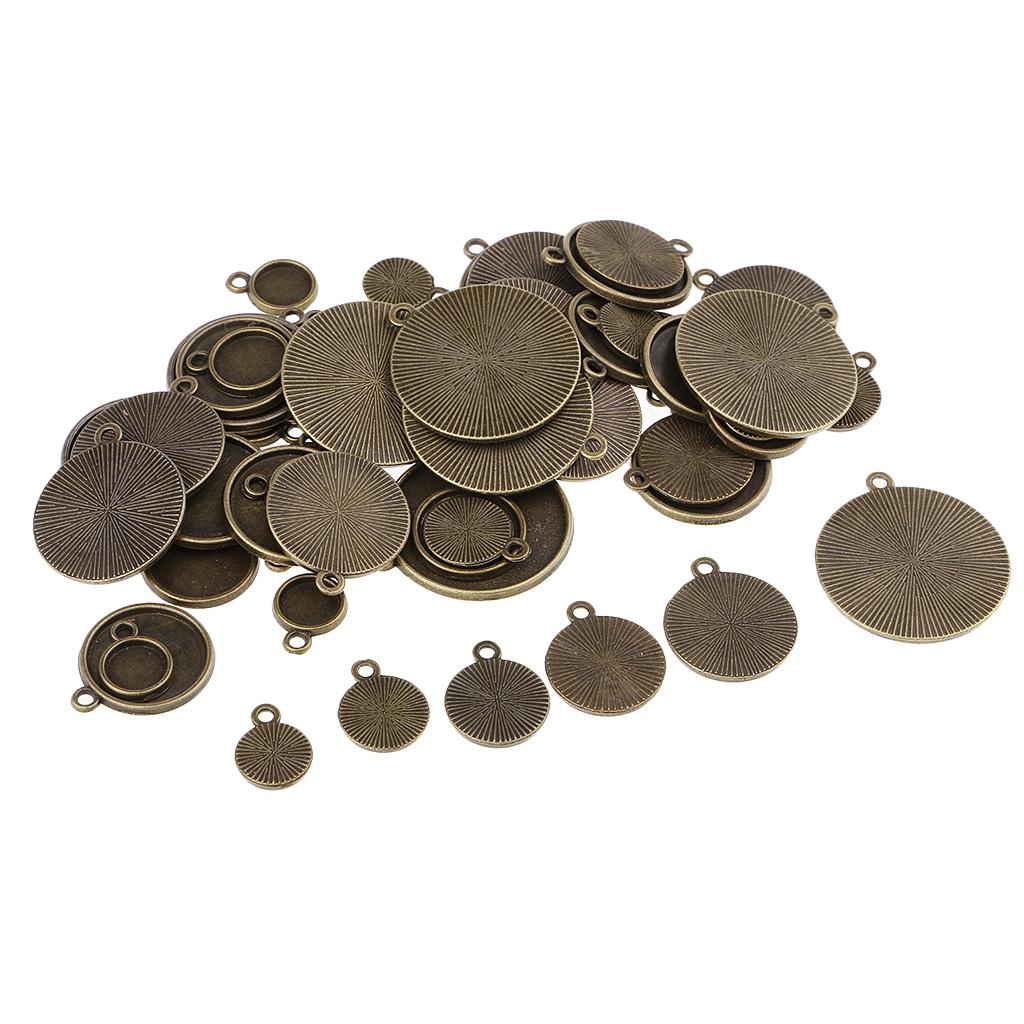 64 Pieces Assorted Antique Bronze Blank Bezel Pendant Trays Double Loops Round Cabochon Settings Trays Base Pendant Blanks DIY Jewelry Making Findings