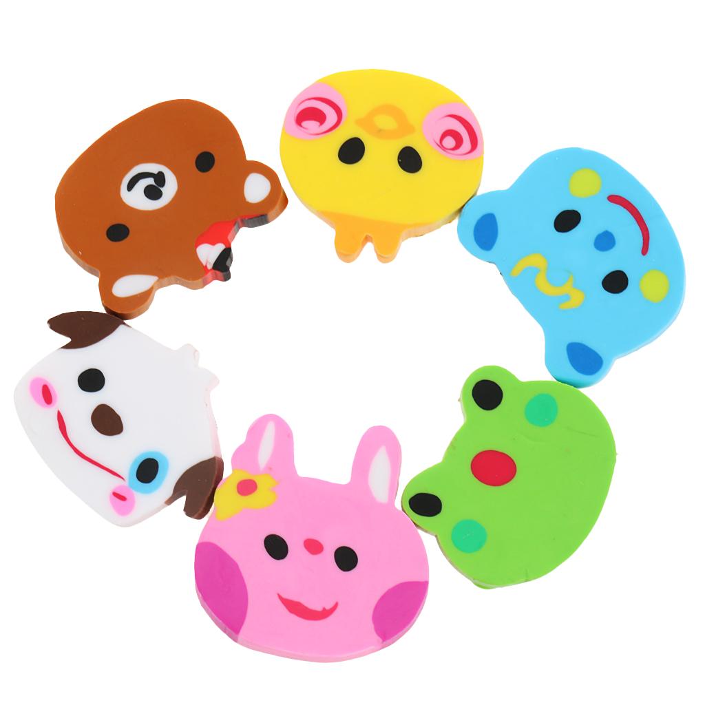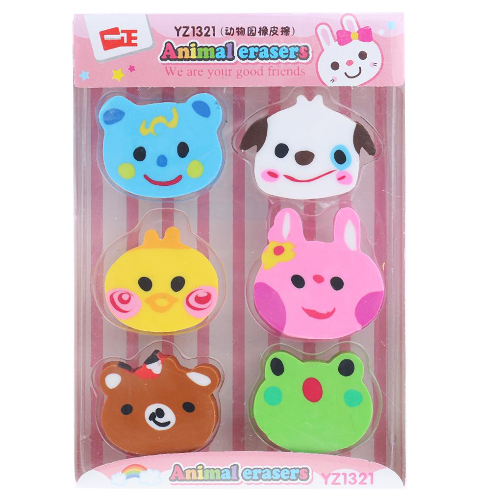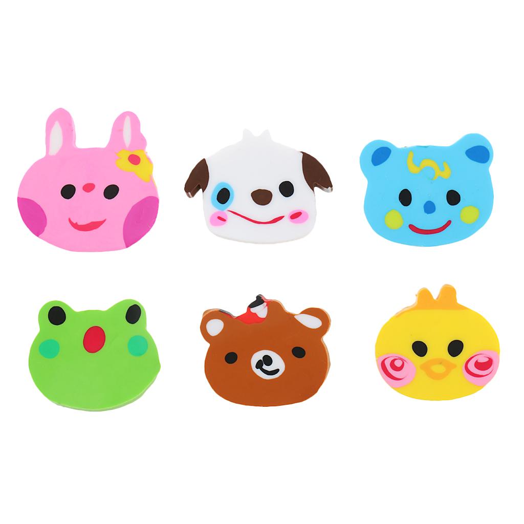 6pcs/Pack Attractive Cartoon Animal Pencil Rubber Erasers for Kids Gift
