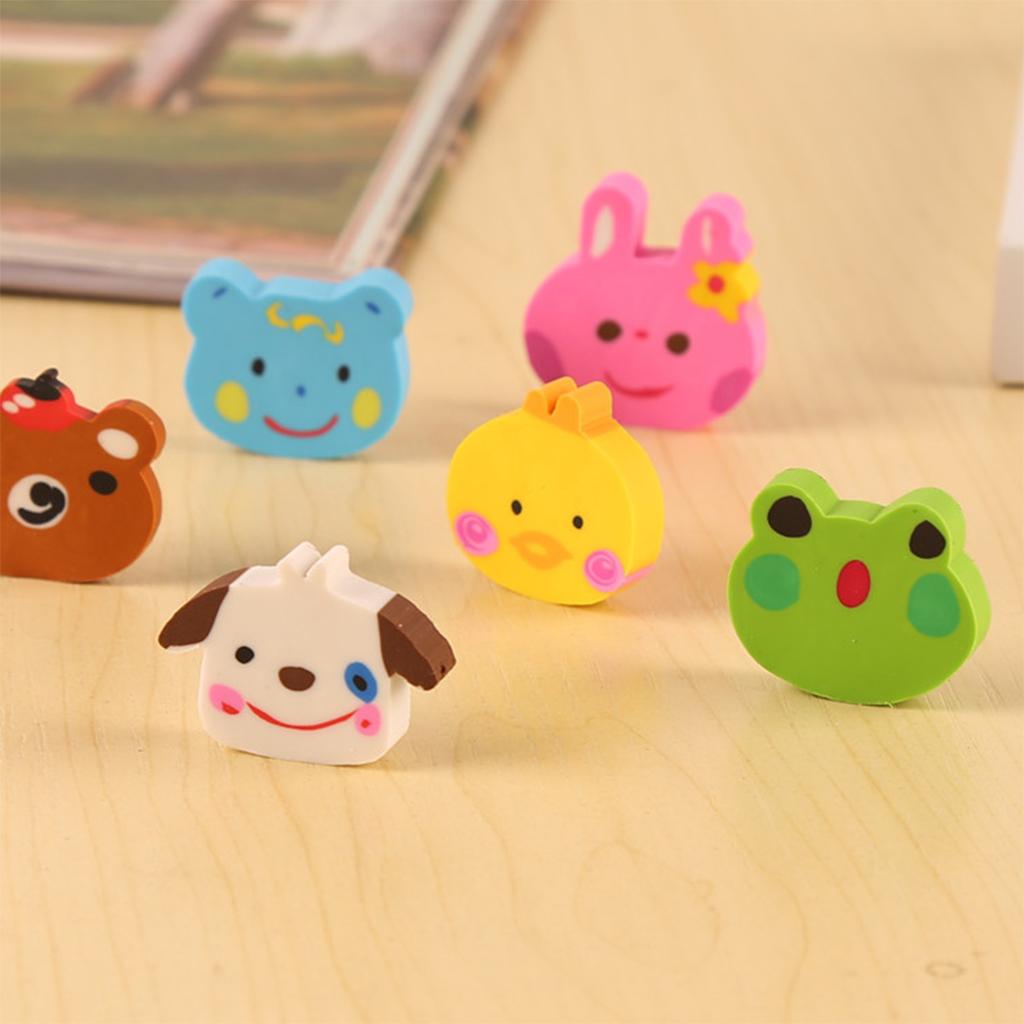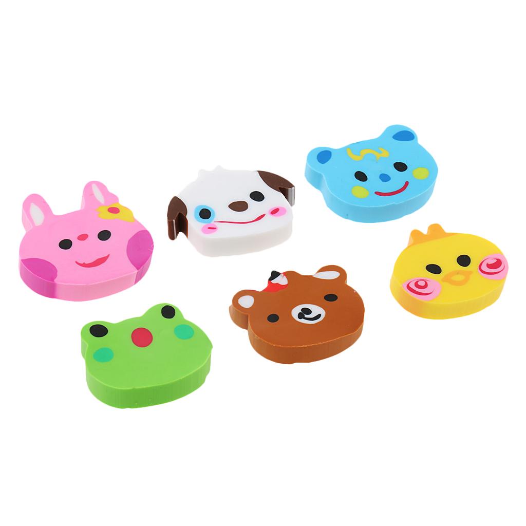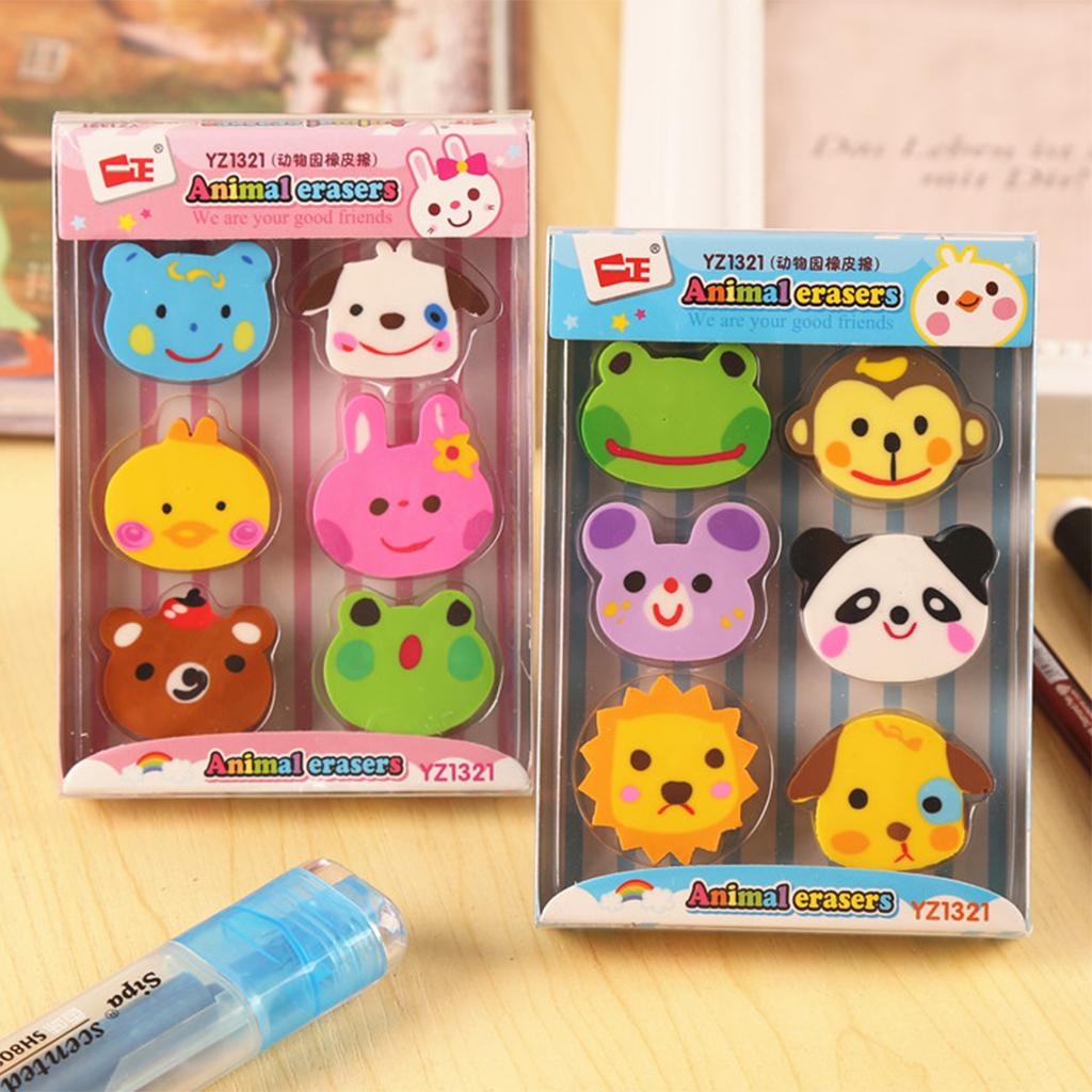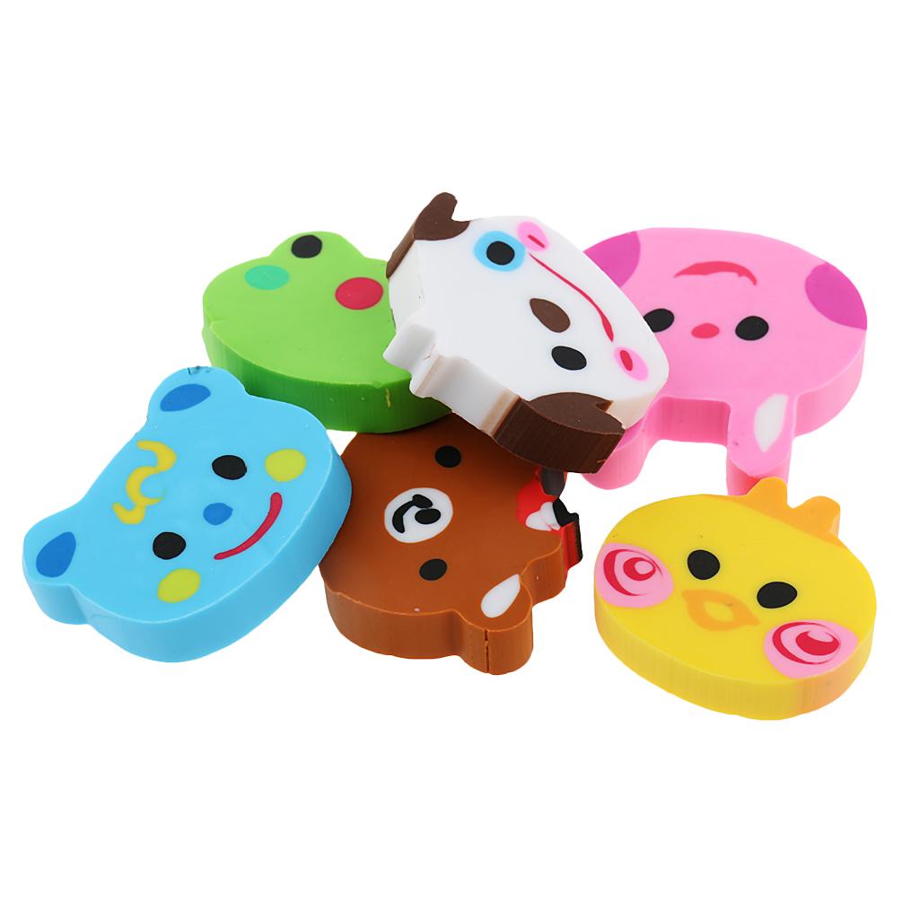 6pcs/Pack Attractive Cartoon Animal Pencil Rubber Erasers for Kids Gift