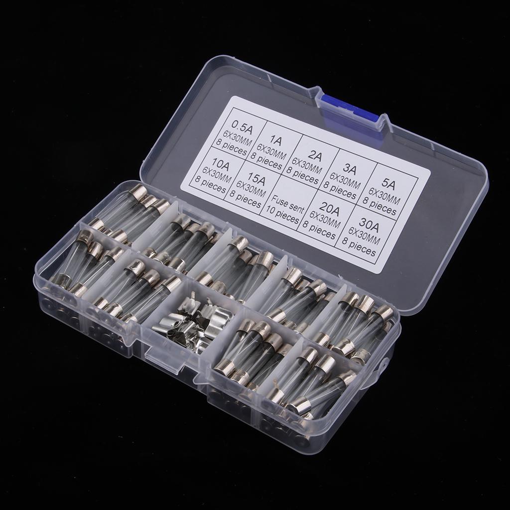 glass tube fuses in 8pcs different fuse Ampere values, and each amp includes.