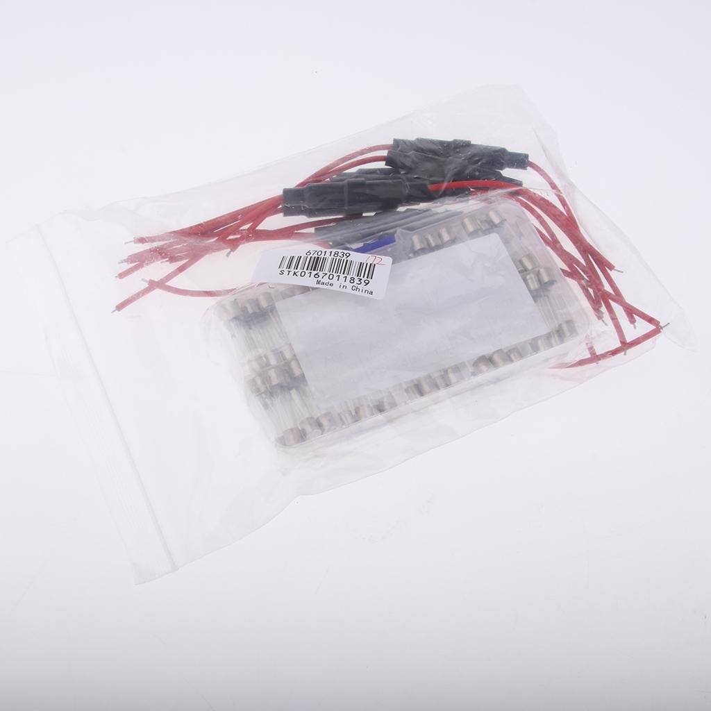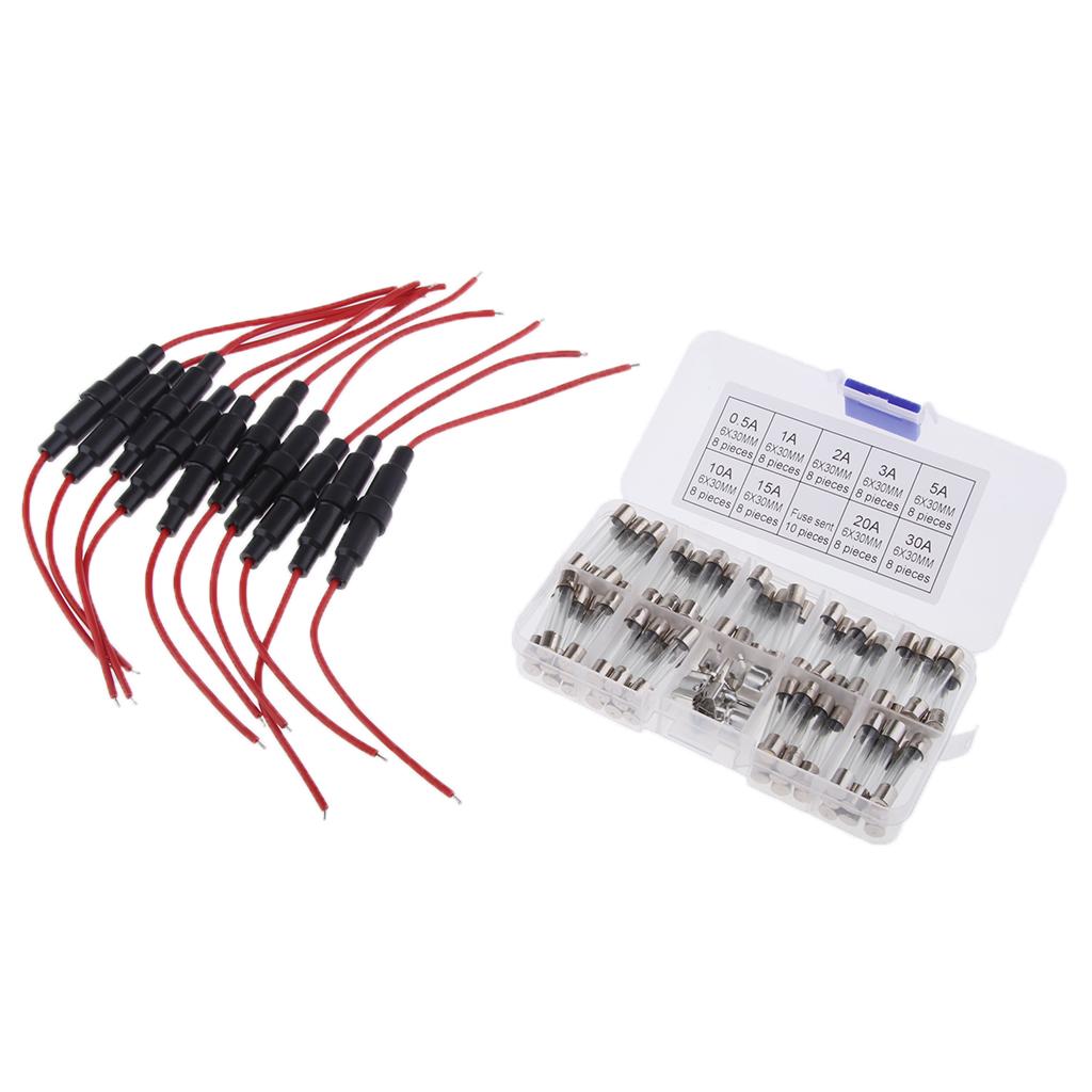 72pcs 6x30mm 0.5-30A Quick Blow Glass Fuses Kit + 16 AWG Wire AGC Inline Fuse Holder Screw Type