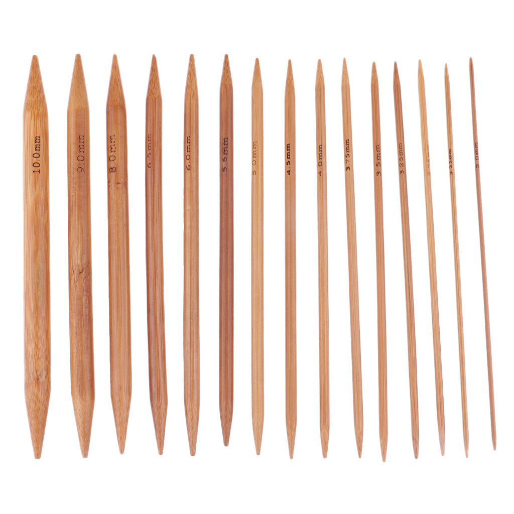 75 Pieces 15 Sizes 15cm Double Pointed Carbonized Smooth Bamboo Knitting Needles