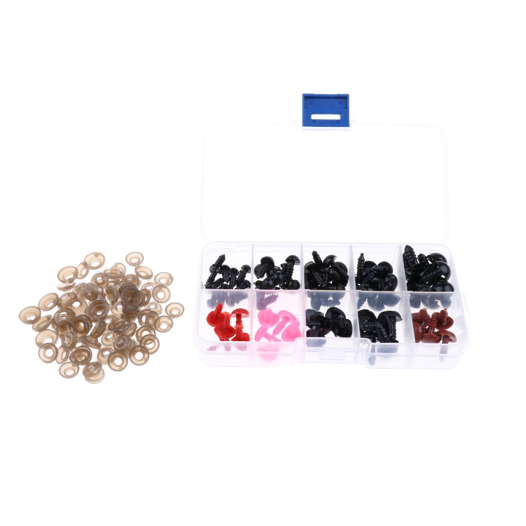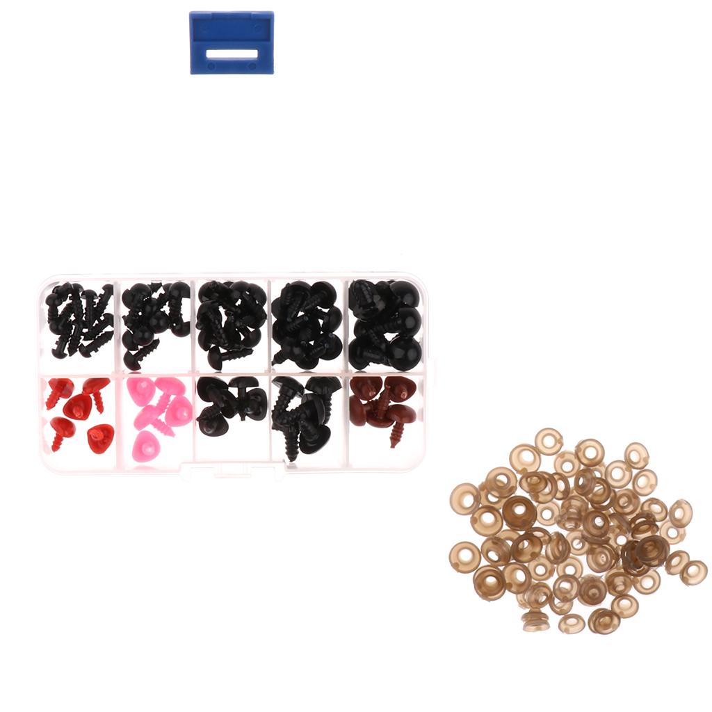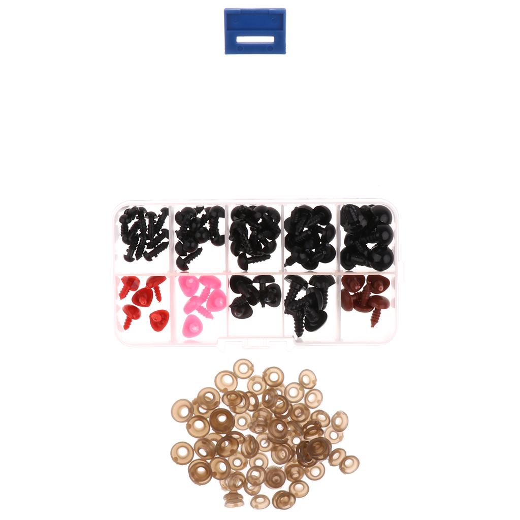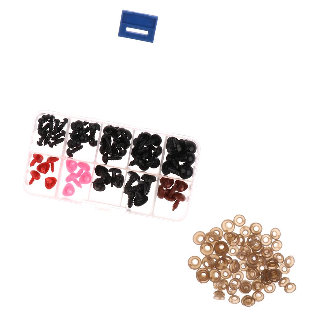 75 Pieces 6-12mm Black Plastic Safety Eyes & Triangle Safety Nose For Teddy Bear Doll Animal