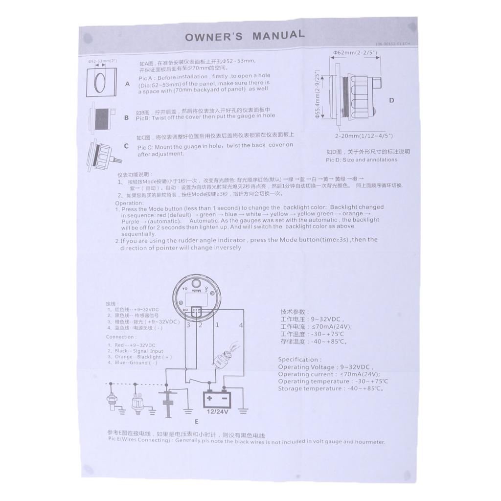 Installation Dimension: Φ52mm (2")