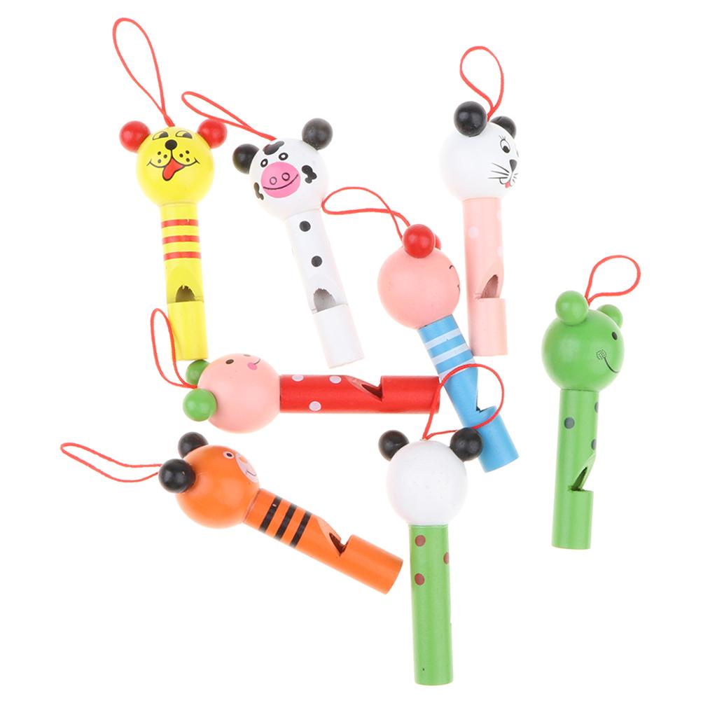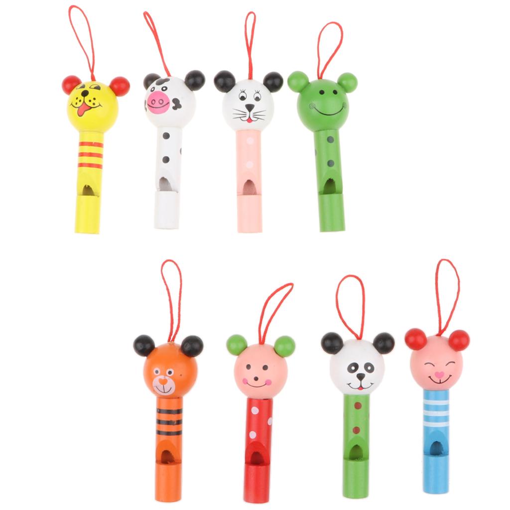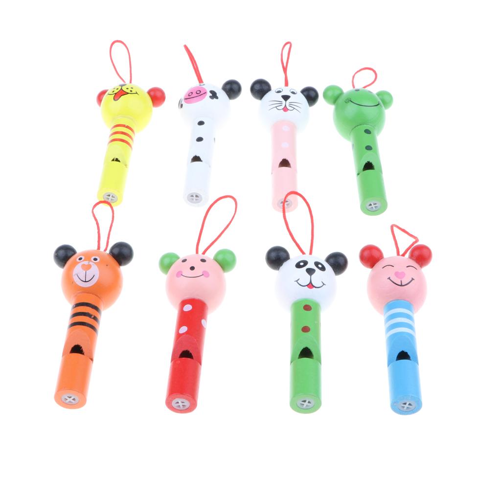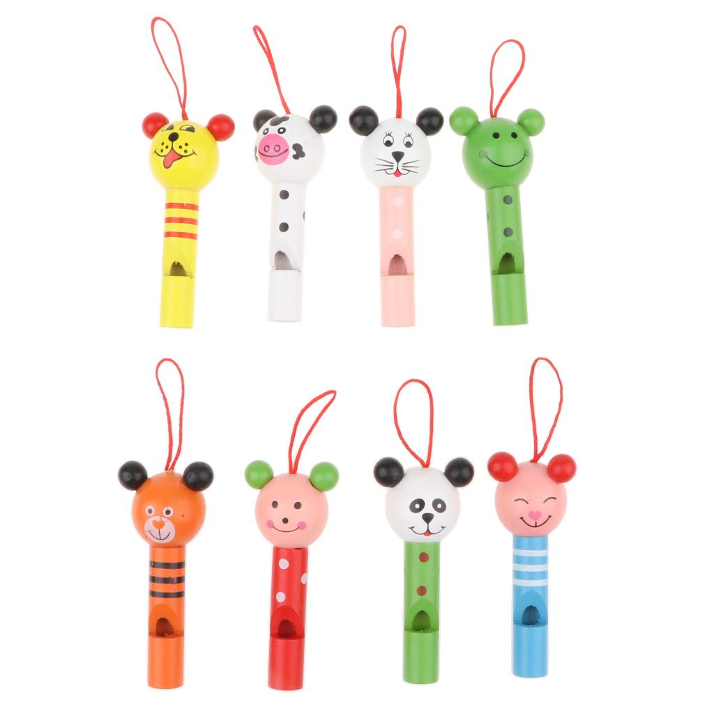 Set of 8 Pieces Wooden Cartoon Animal Head Trumpet Whistle Musical Instrument for Kids/Baby Early Learning Sounding Toy
