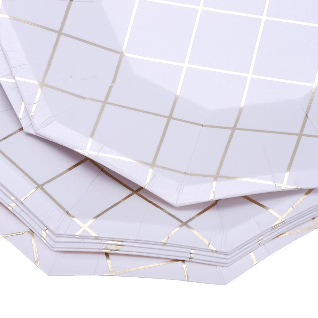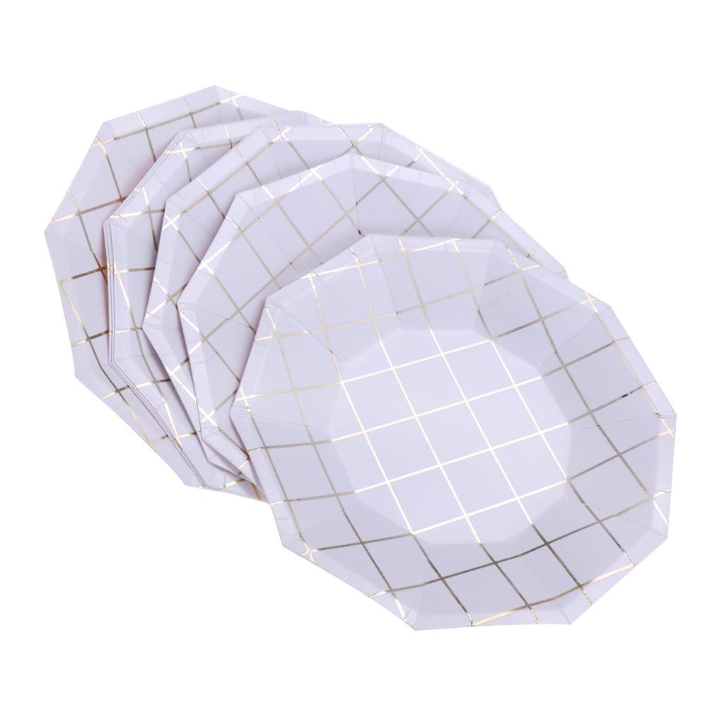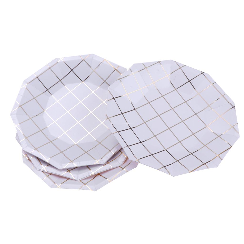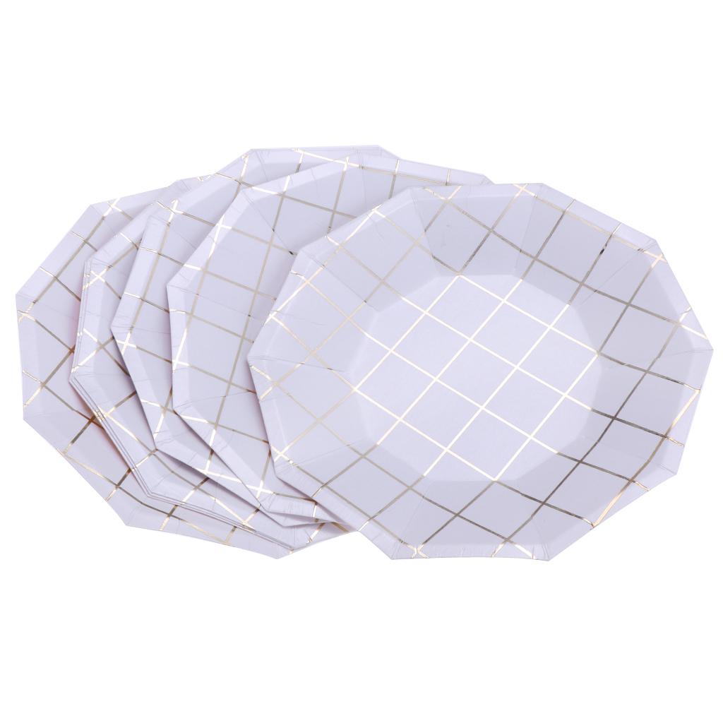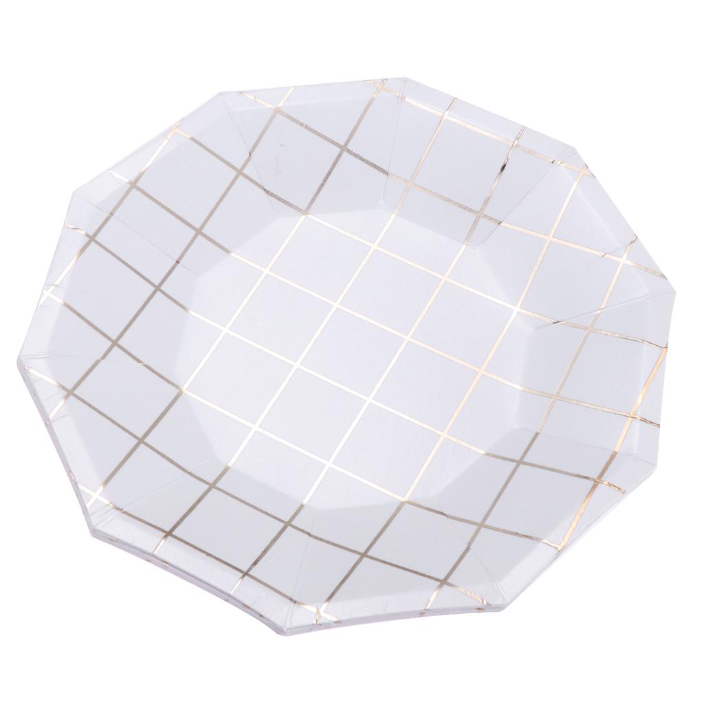 Fashion foil gold grid round paper plates or trays.