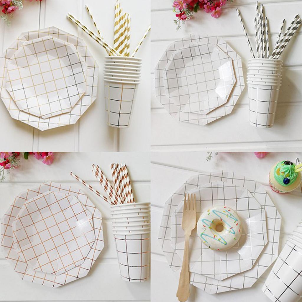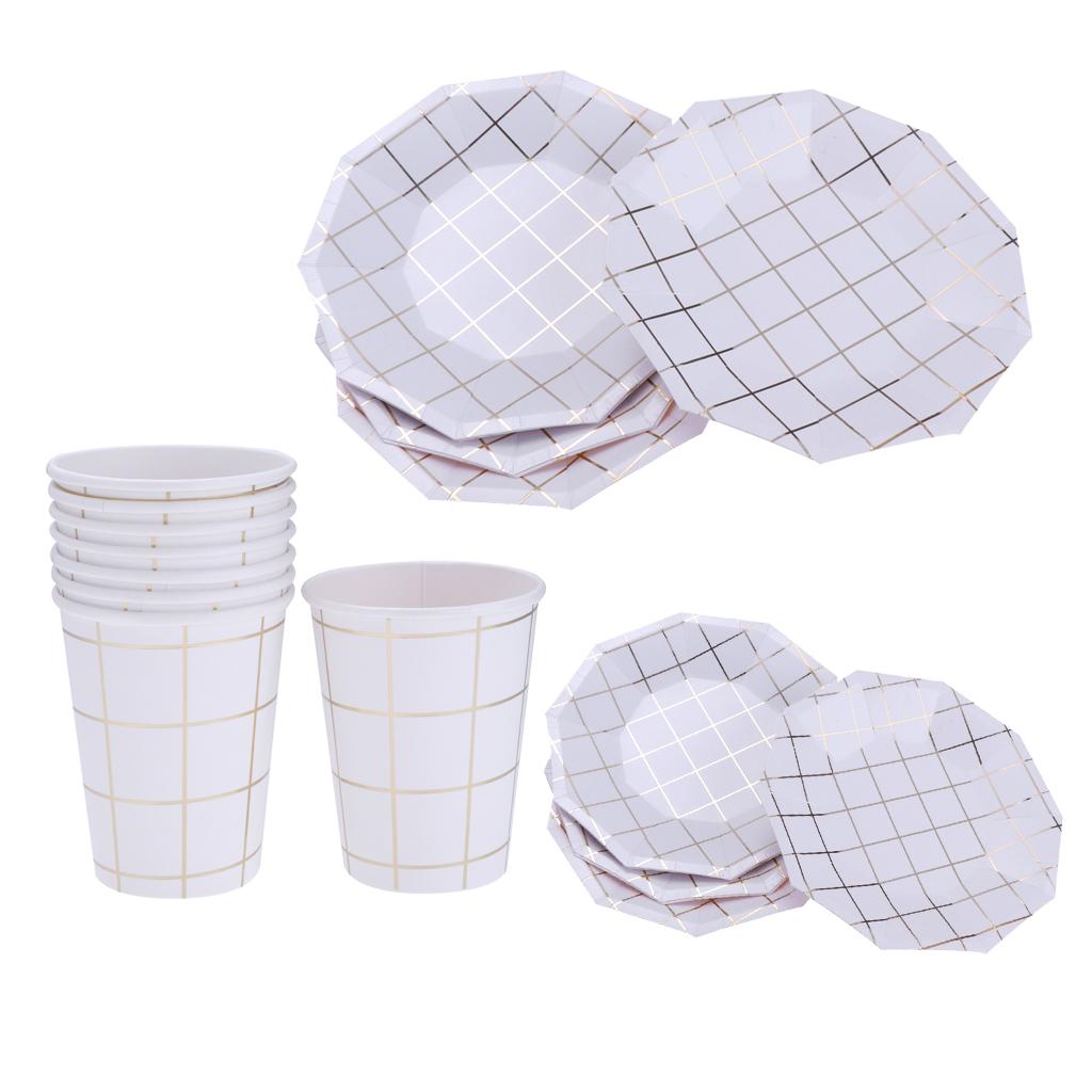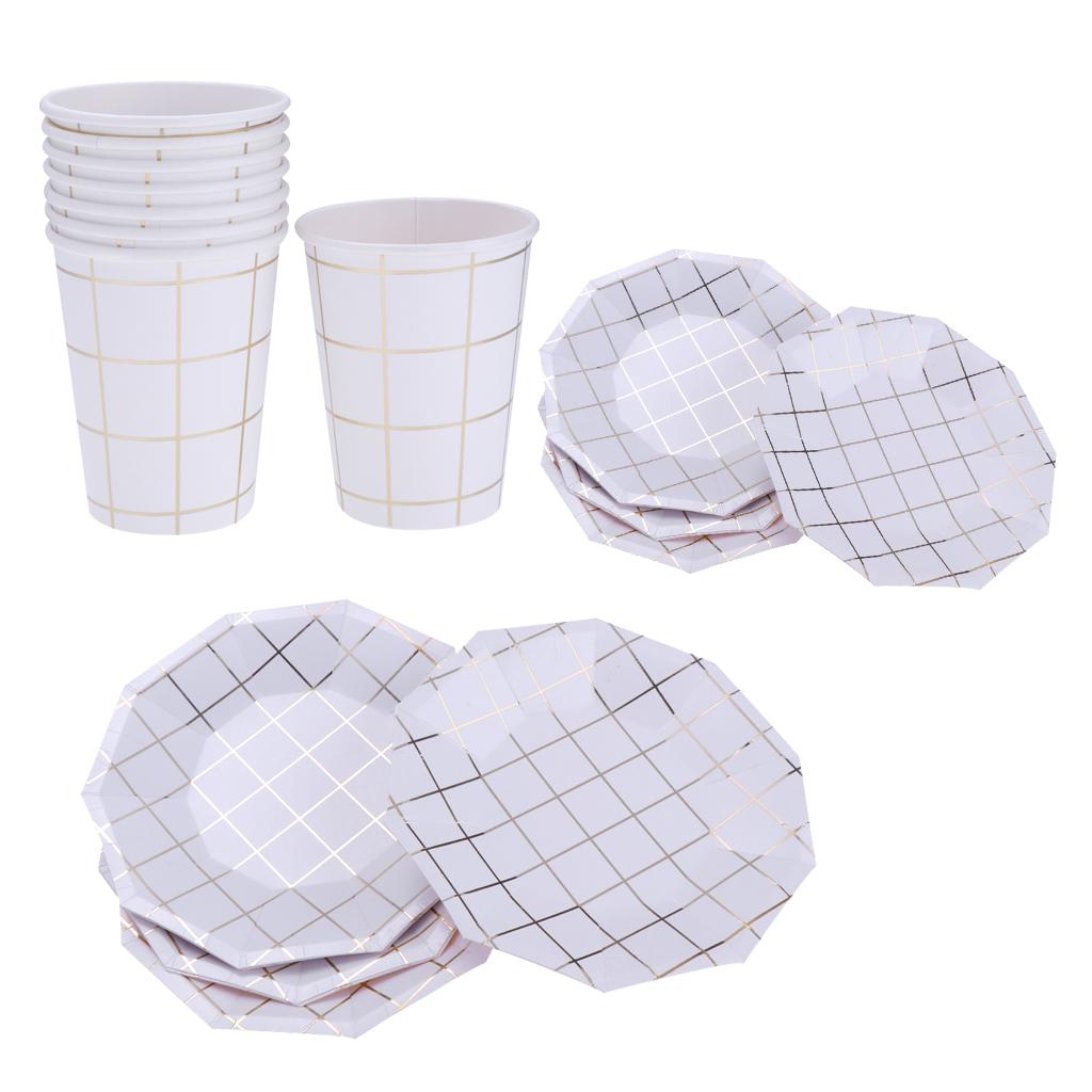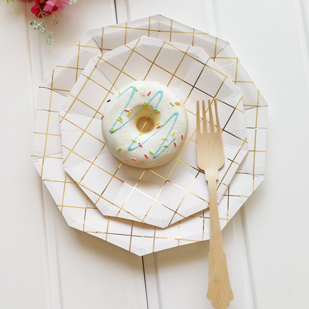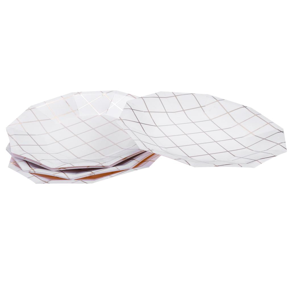 Fashion foil gold grid round paper plates or trays.