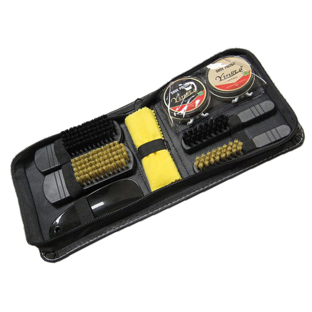 This all in one shoe cleaning kit features everything you need to shine and maintain the look of your shoes