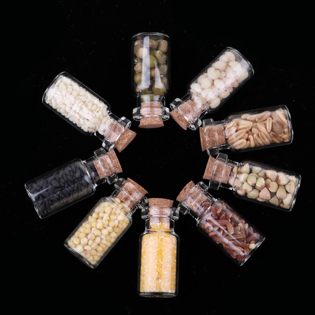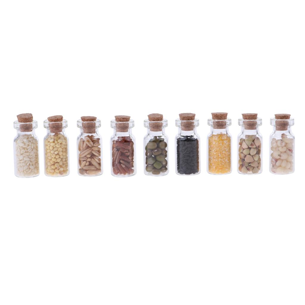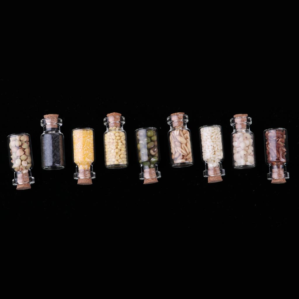 9 Pieces set mini cute class jar with different dried foods, the cover can be opened